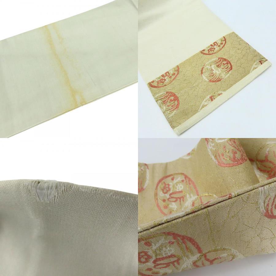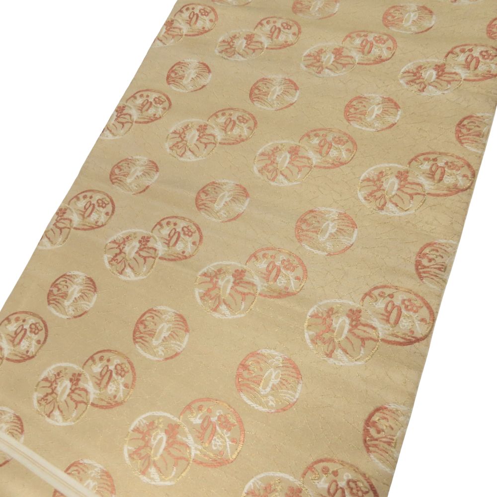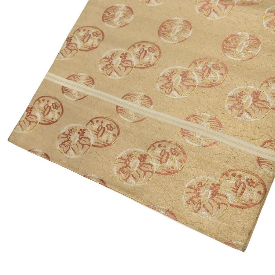 品名【中古】 名古屋帯 九寸 正絹(金銀糸除く) ゴールド系 ピンク 名古屋仕立て 洒落帯 モダン レディース 女性