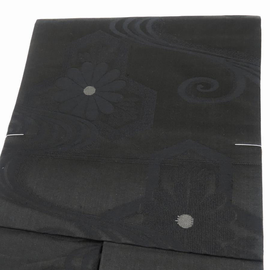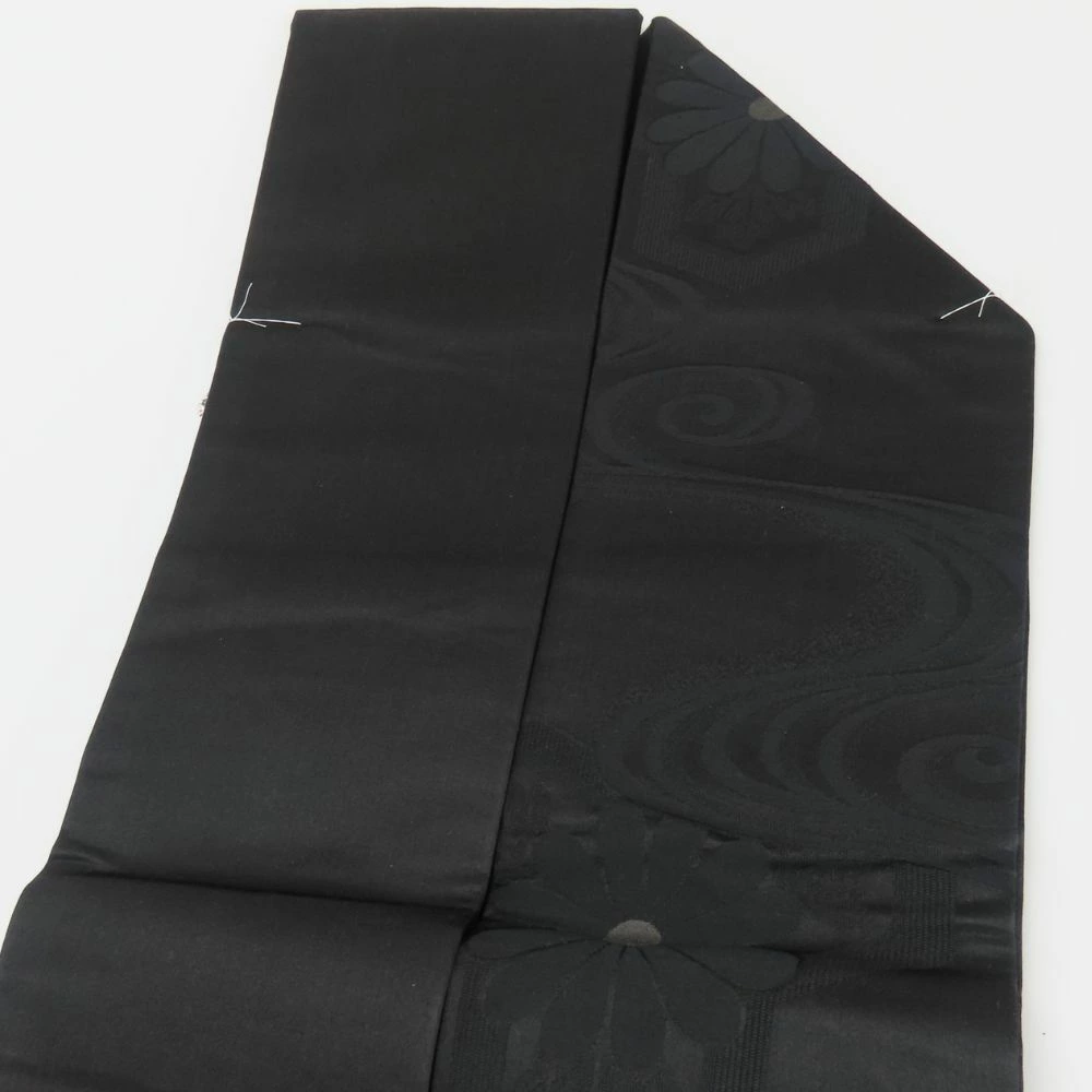 | 品名 | 【中古】 名古屋帯 九寸 しつけ糸あり 正絹(金銀糸除く) ブラック 名古屋仕立て 喪服用 しつけ糸あり レディース 女性 |