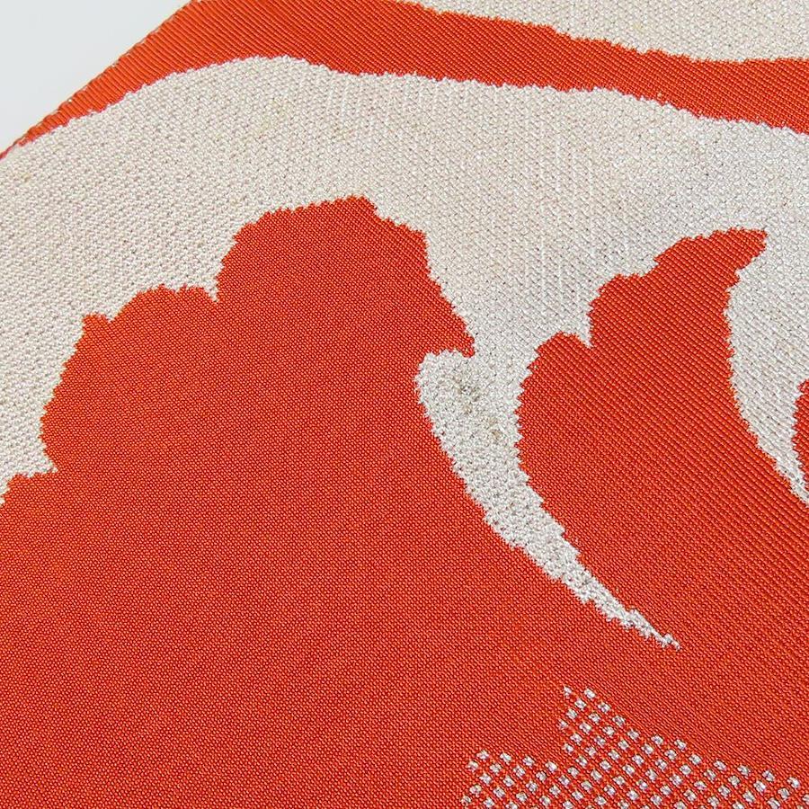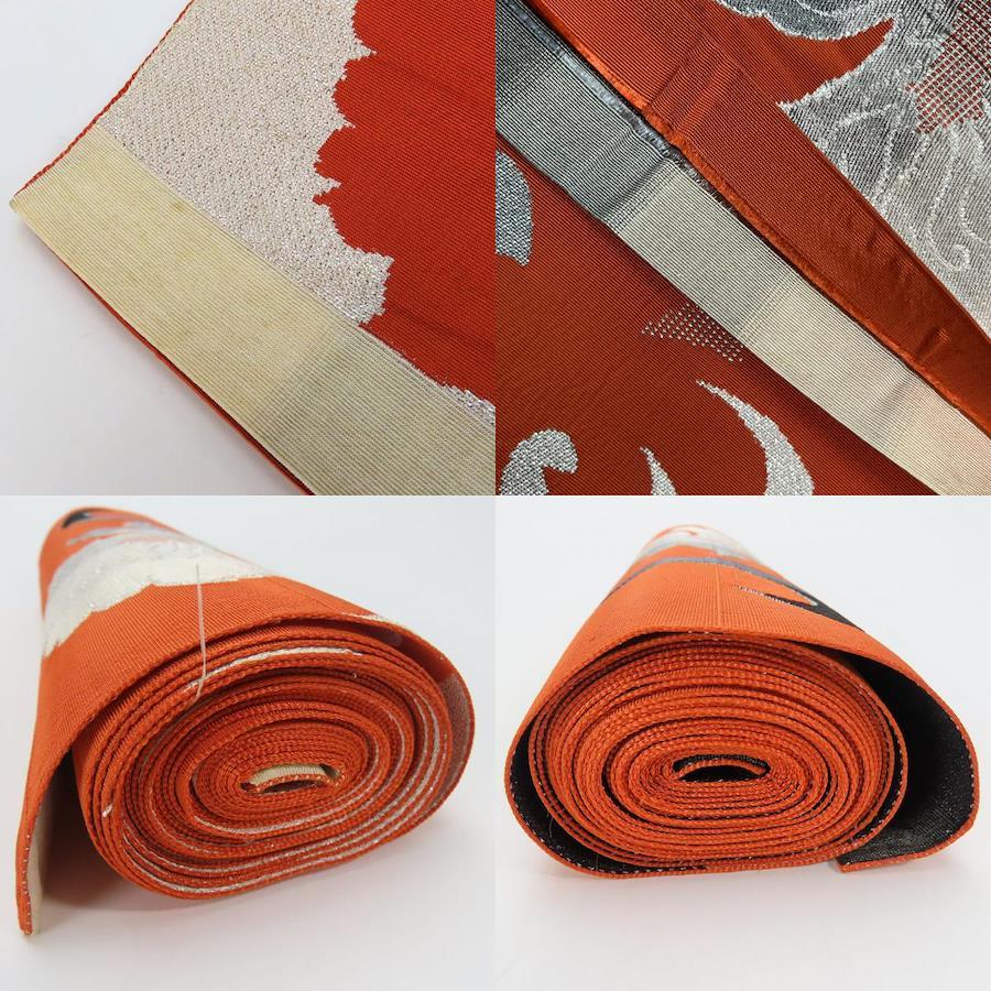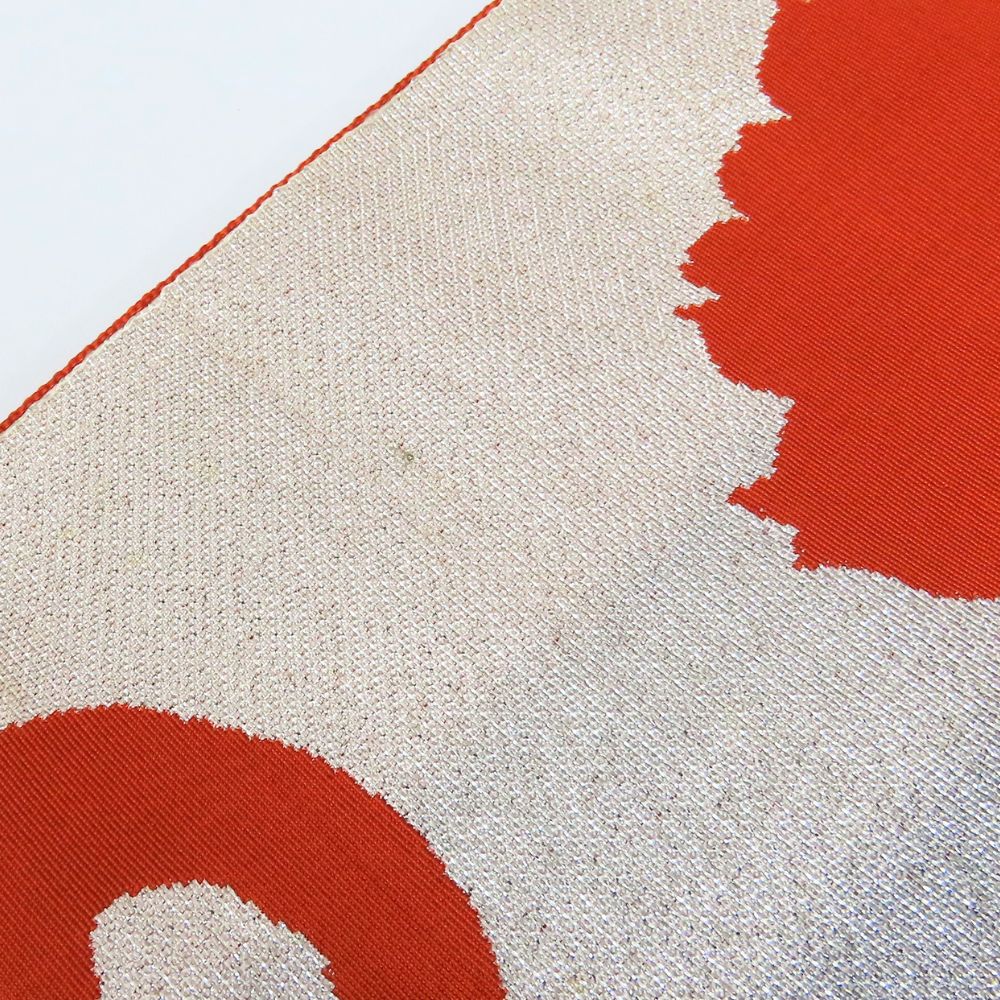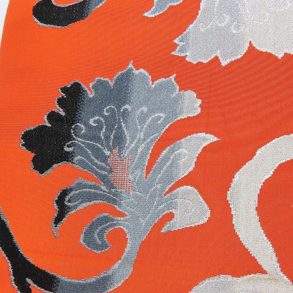[Pre-owned] Nagoya Obi, Kyoto Bag, 8 Sun, Pure Silk (excluding gold and silver threads), Silver Thread, Vermilion, Black, Gray, Beige, Arabesque Pattern, Kimono, Women's