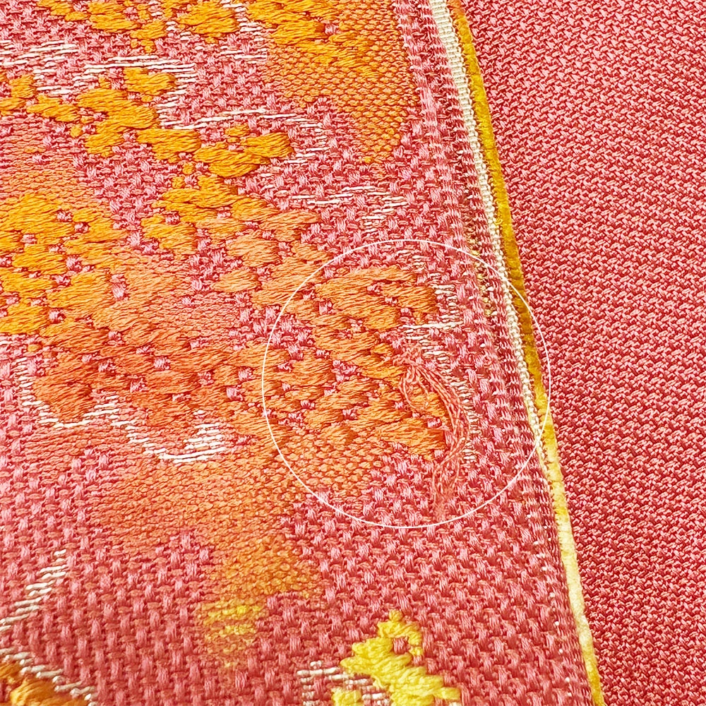 | 品名 | 【中古】 名古屋帯 正絹(金銀糸除く) ピンク 黄緑 マルチカラー 和服 呉服 松葉仕立て 着物 レディース 女性 |