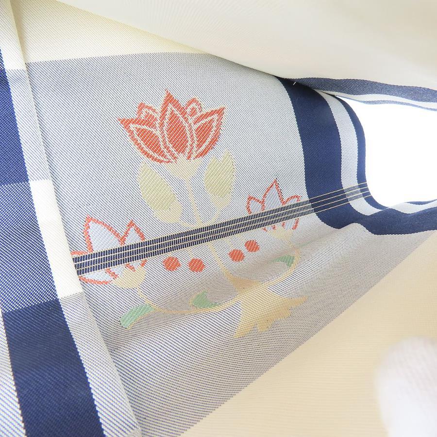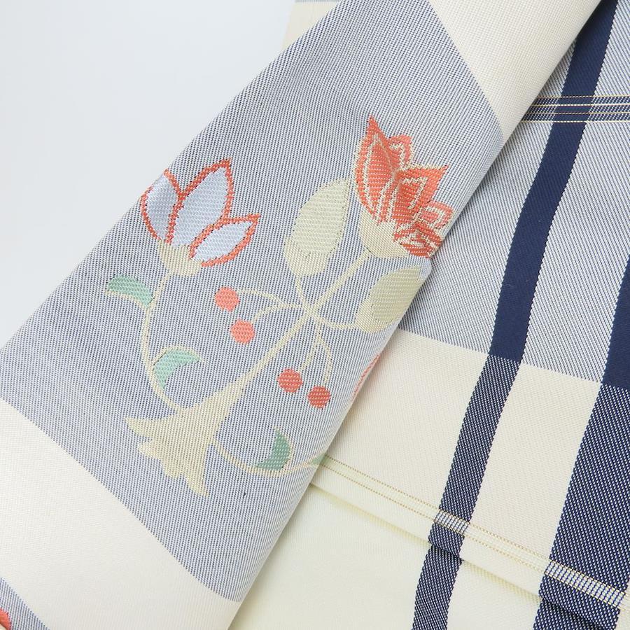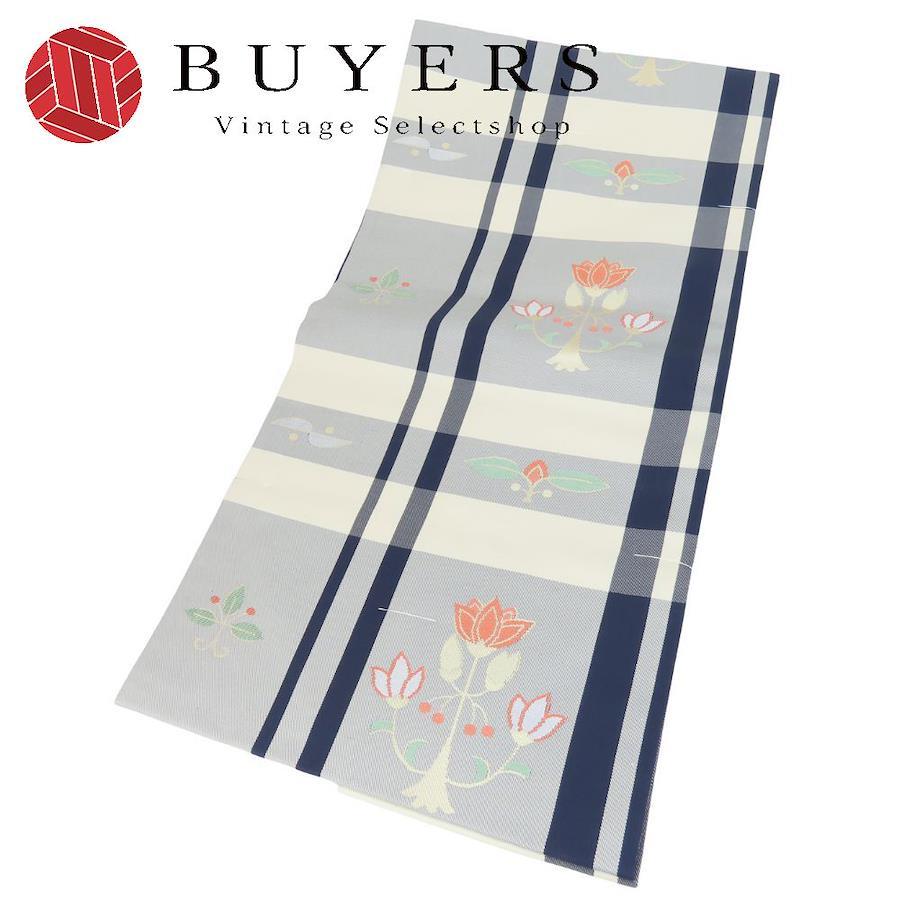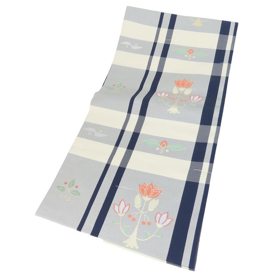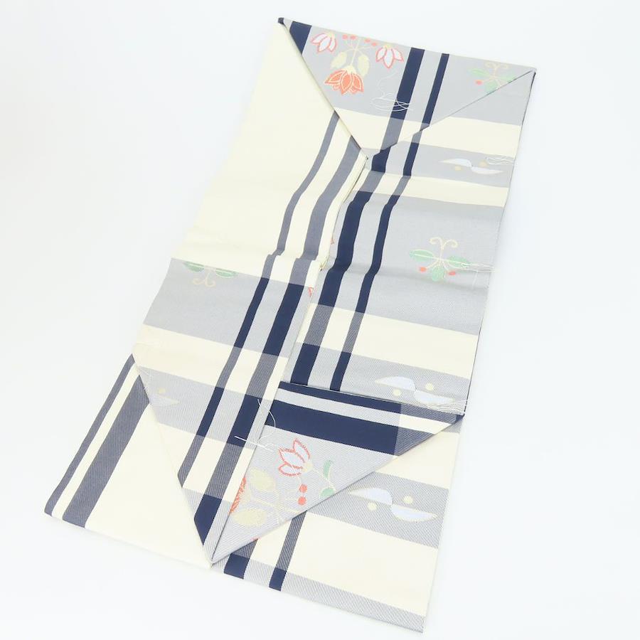 | 品名 | 【中古】 名古屋帯 しつけ糸あり 正絹(金銀糸除く) グレー系 草花柄 格子柄 名古屋仕立て レディース 女性 |