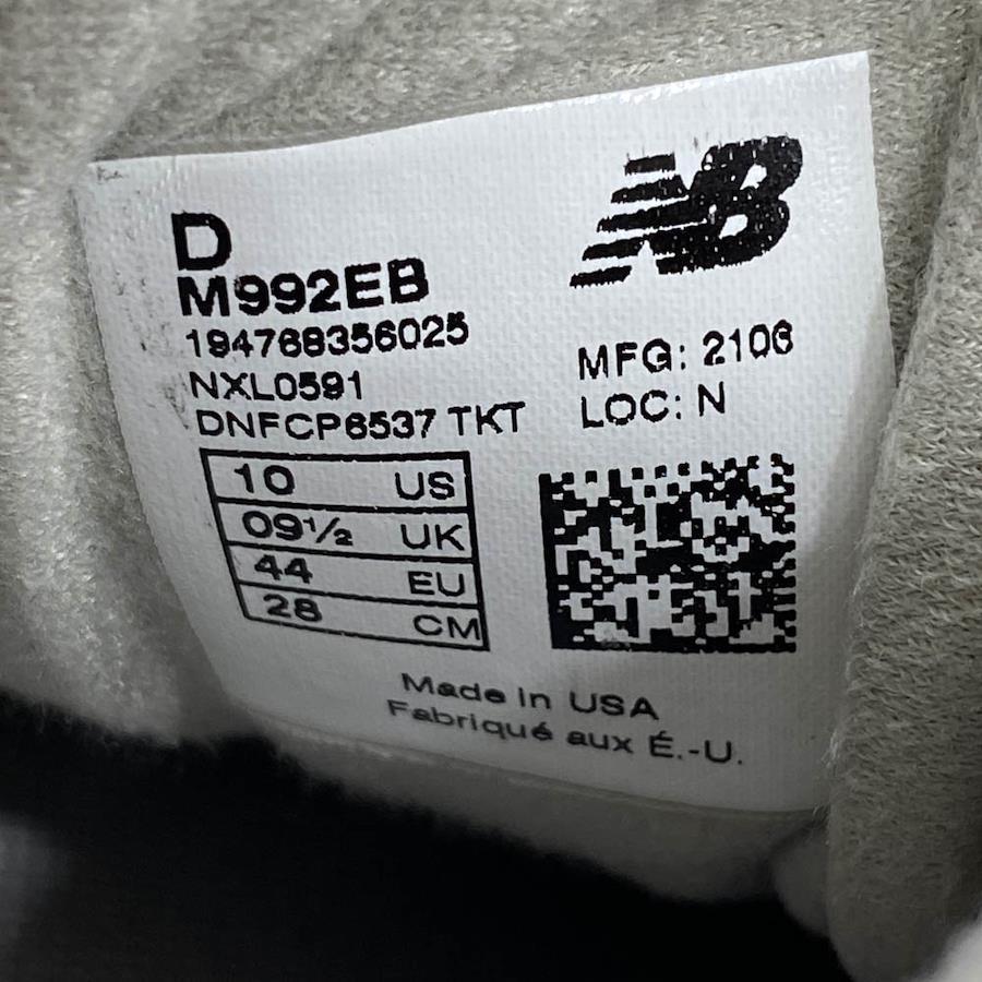 Pre-owned NEW BALANCE M992EB Suede Low-Top Sneakers, Black, Size 28cm