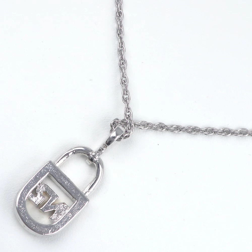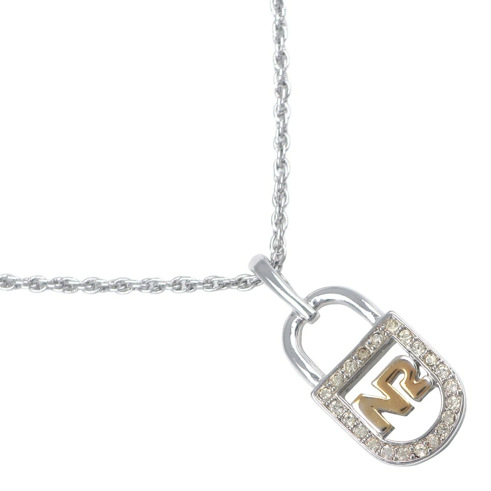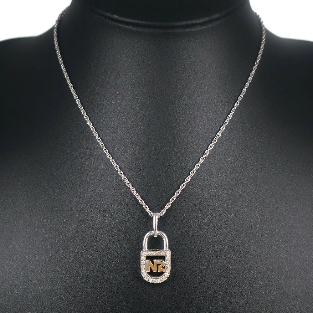Pre-owned Nina Ricci logo necklace, silver with padlock, approximately 7.6g, for women.