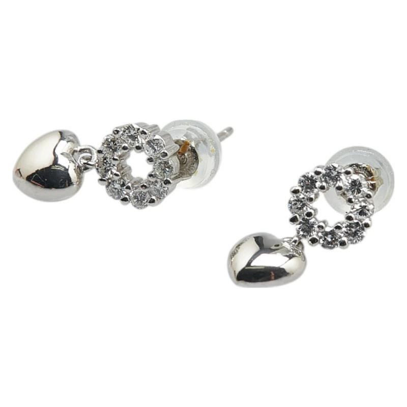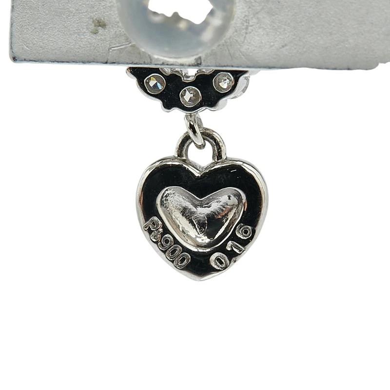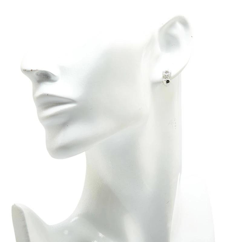 Pre-owned, no-brand Pt900 platinum stud earrings with a 0.32ct diamond and a swinging heart motif.
