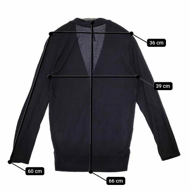 | 実寸サイズ | 肩幅:約36cm 着丈:約66cm 身幅:約39cm 袖丈:約60cm ※採寸画像がある商品はハンガーに吊るした状態での計測のため、平置きでの採寸とは差が生じる場合がございます。平置きでの実寸サイズをご希望の場合は、ご購入前に必ずご質問ください。 ※記載以外のサイズが合わないことを理由とした返品はできませんので、 記載部分以外で実寸サイズの気になる箇所があれば必ず購入前にご質問ください。 |