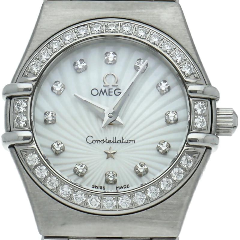 | オメガの創立160周年を記念して発売されたコンステレーション。ホワイトシェルのダイヤルは、コンステレーションを象徴する6時位置の星から放射状のラインが広がり、奥行きのあるデザインとなっています。 |