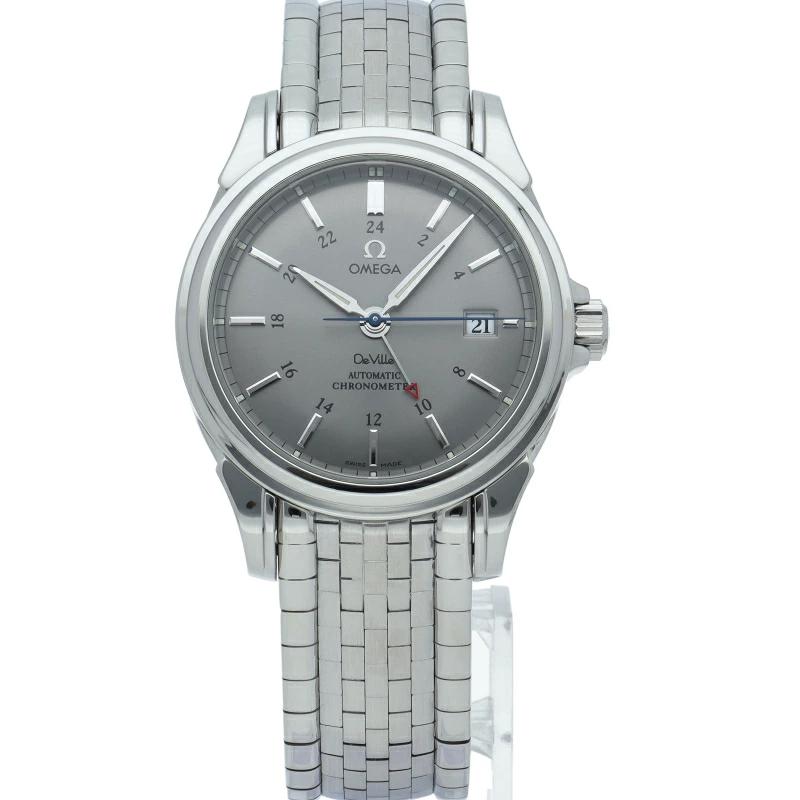 Pre-owned Omega De Ville Co-Axial GMT 38.7mm (4533.40 stainless steel men's watch, gray) with box and warranty.