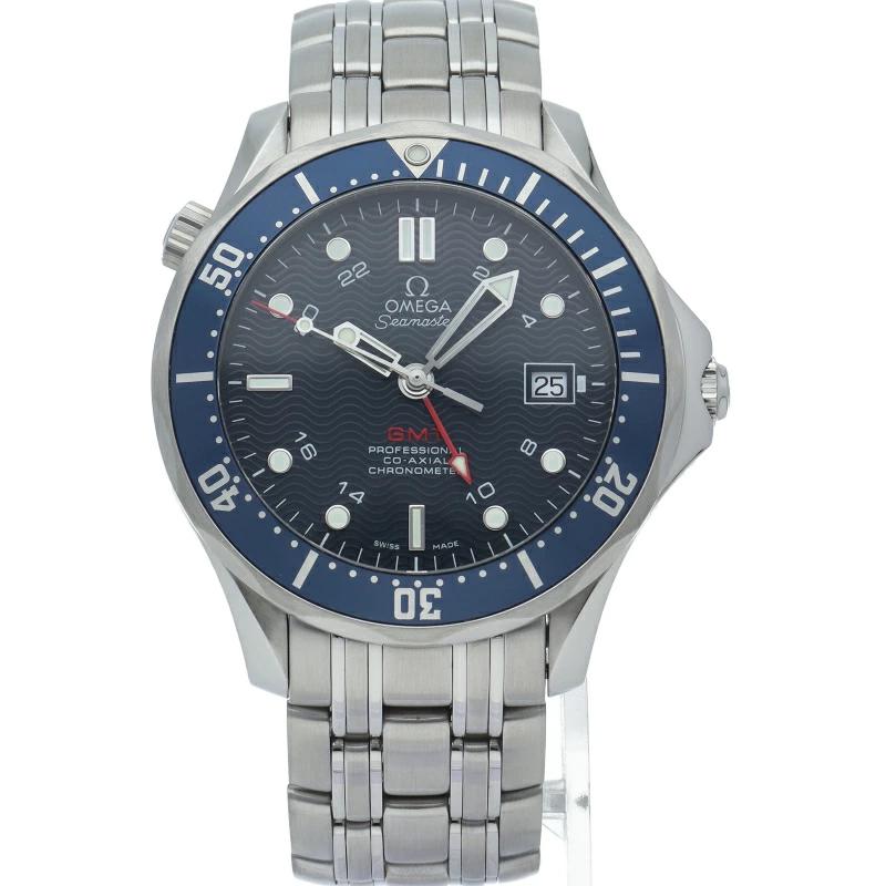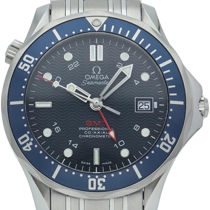 | オメガを代表する人気ダイバーズウォッチ「シーマスター」。防水300M・ヘリウムエスケープバルブ・GMT機能を備えた本格的な多機能ダイバーズモデル。 |
