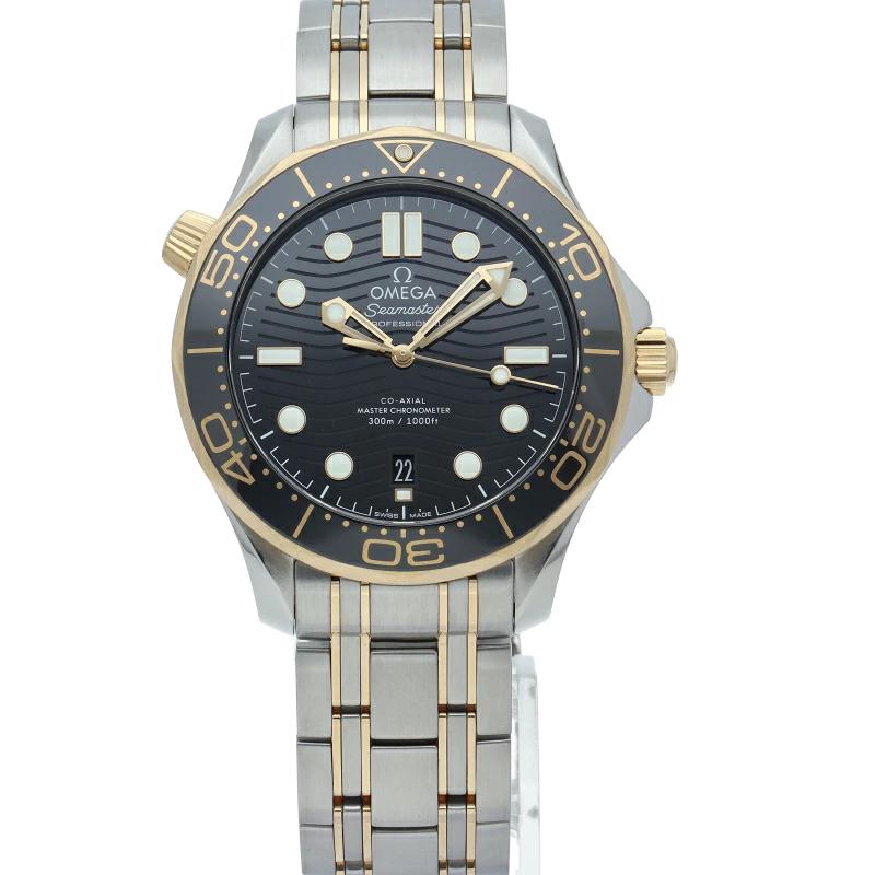 Pre-owned Omega Seamaster Diver 300M Co-Axial Master Chronometer 42mm (210.20.42.20.01.002) in 18K Yellow Gold and Stainless Steel, Black.