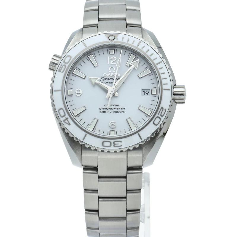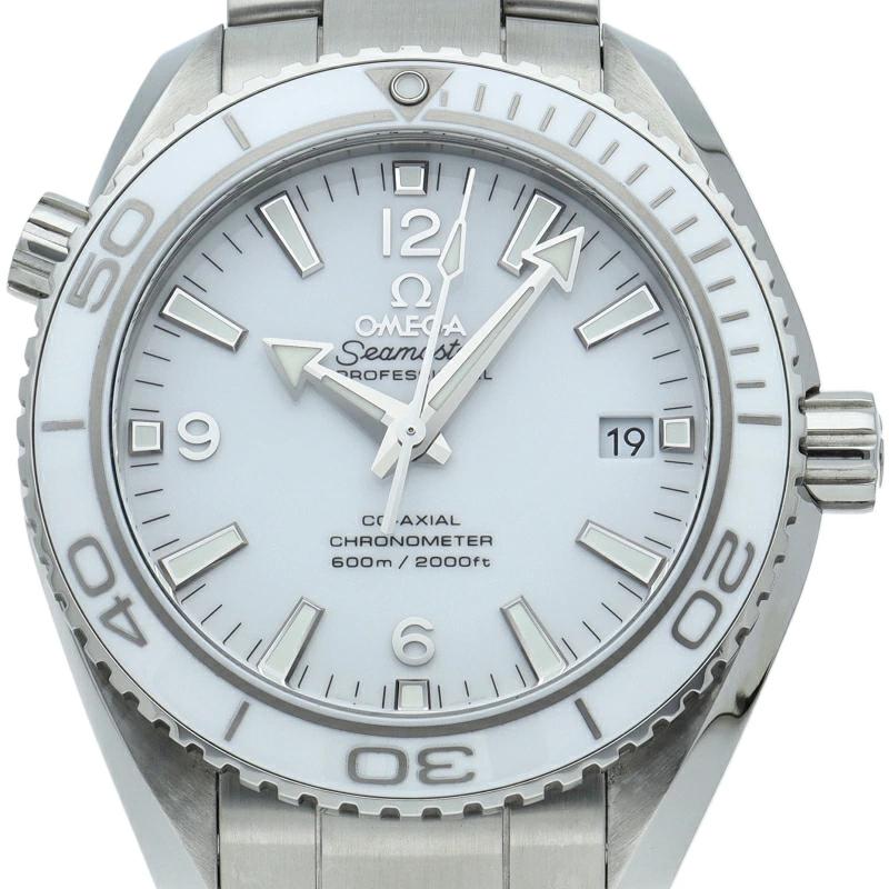 | オメガの人気ダイバーズウォッチ「プラネットオーシャン」。ベゼルにセラミックを採用し、高級感と耐久性を兼ね備えた1本です。 |