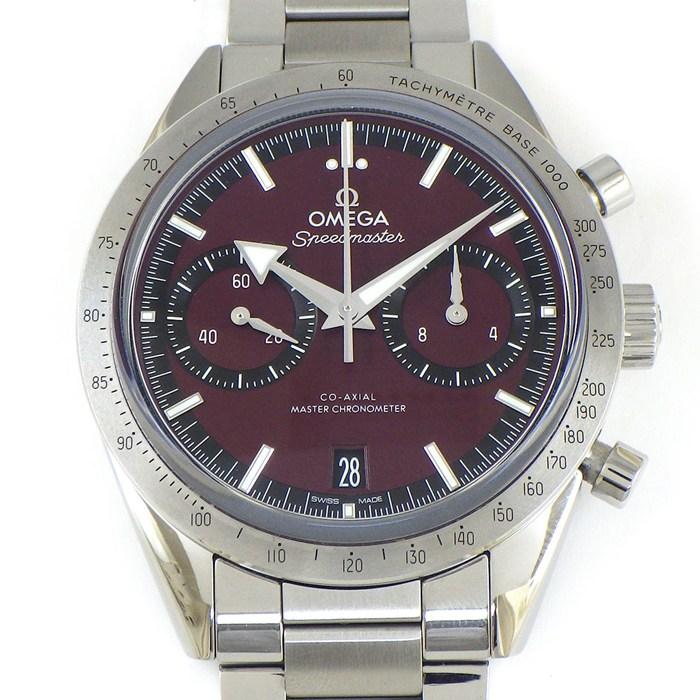 ■商品名OMEGA 腕時計 スピードマスター'57 332.10.41.51.11.001 バーガンディ文字盤 デイト クロノグラフ タキメーター スモールセコンド 裏スケ SS 手巻き 【箱・保付き】 【中古】