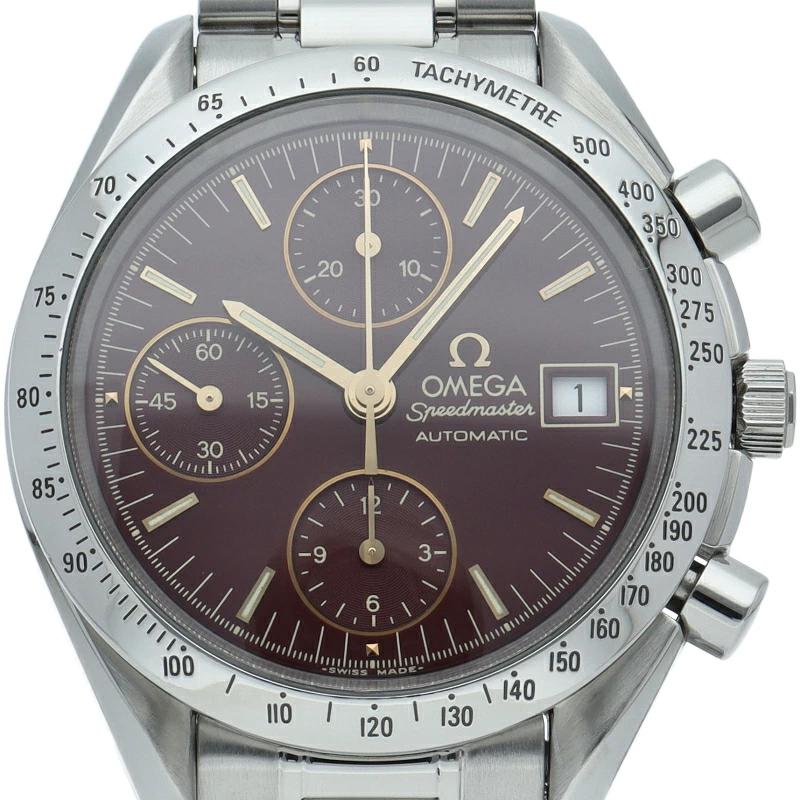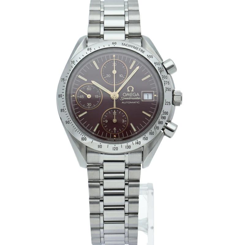 | オメガの代表的な人気シリーズ「スピードマスター・デイト」。クロノグラフ・デイト表示機能付きと便利で実用性のある1本です。こちらは丸井限定モデルのレッド文字盤となっております。 |