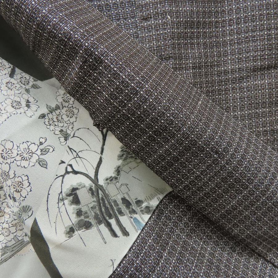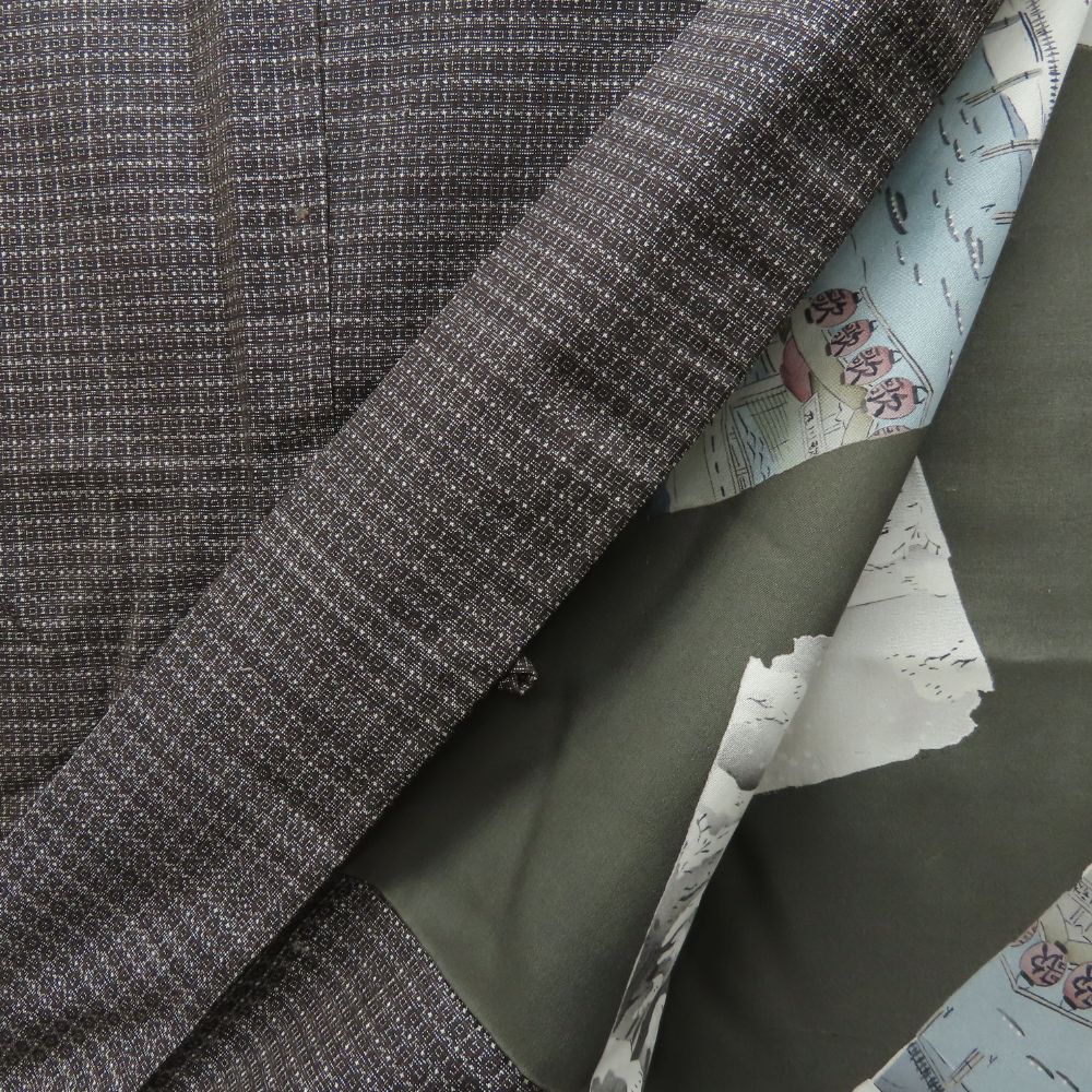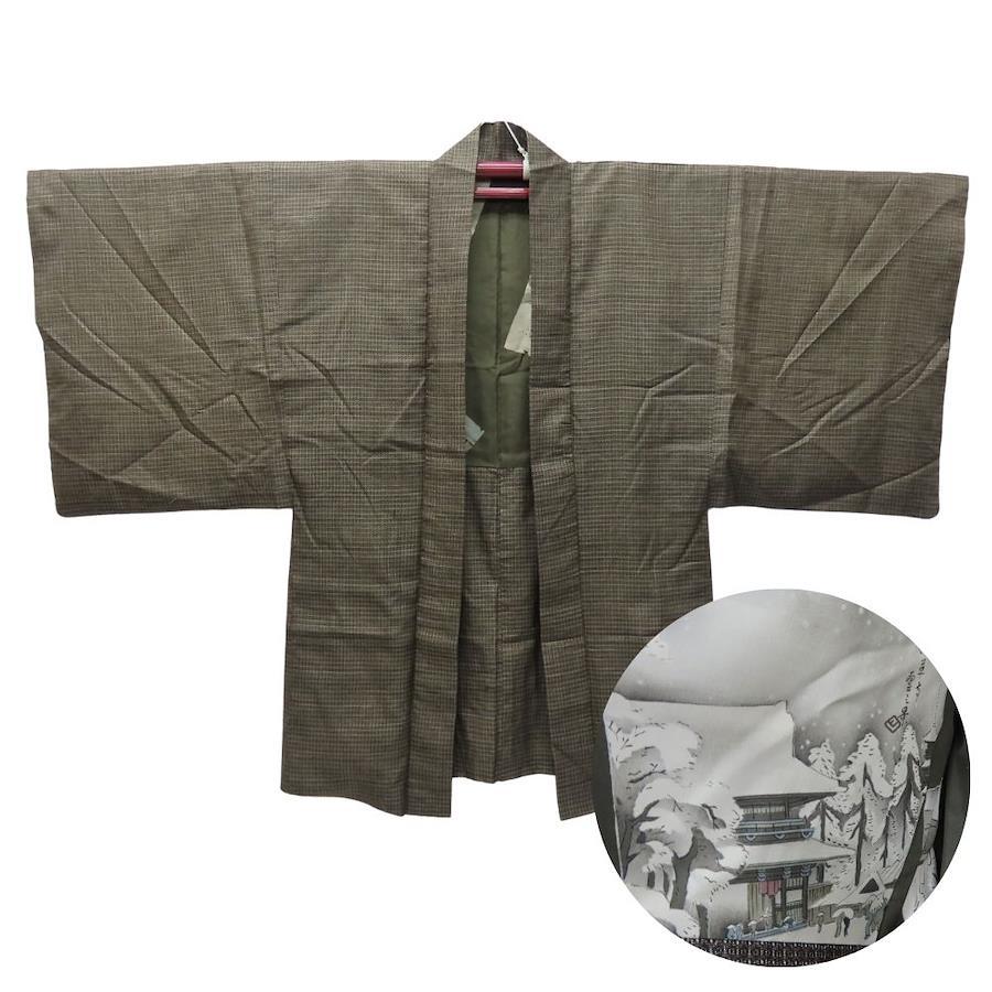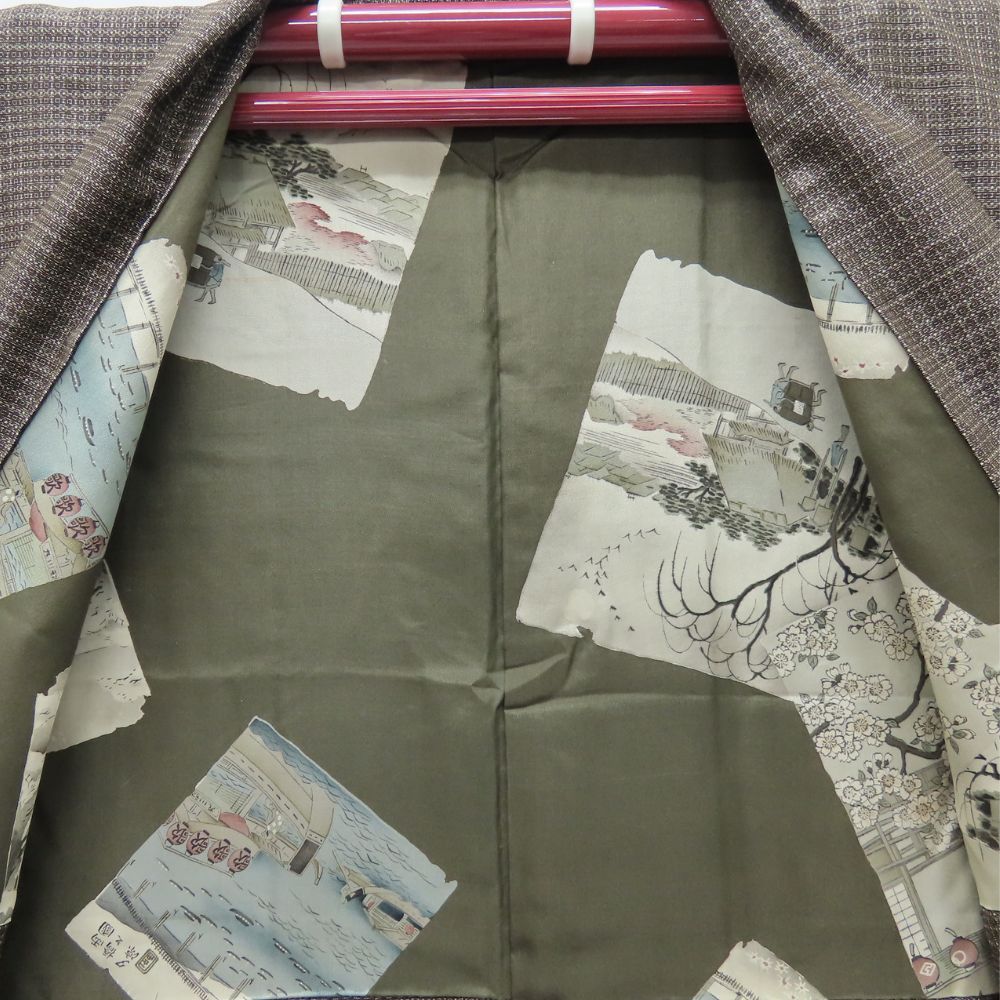 | 品名 | 【中古】 羽織 大島紬 正絹 茶 裏地あり 風景絵札 おしゃれ メンズ 男性 |