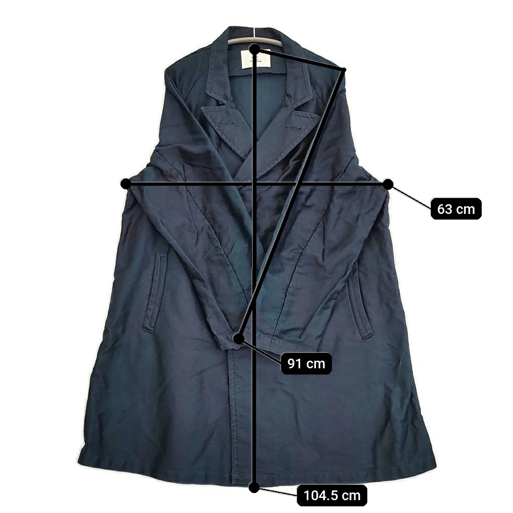 | 実寸サイズ | 着丈:約104.5cm 身幅:約63cm 裄丈:約91cm ※採寸画像がある商品はハンガーに吊るした状態での計測のため、平置きでの採寸とは差が生じる場合がございます。平置きでの実寸サイズをご希望の場合は、ご購入前に必ずご質問ください。 ※記載以外のサイズが合わないことを理由とした返品はできませんので、 記載部分以外で実寸サイズの気になる箇所があれば必ず購入前にご質問ください。 |