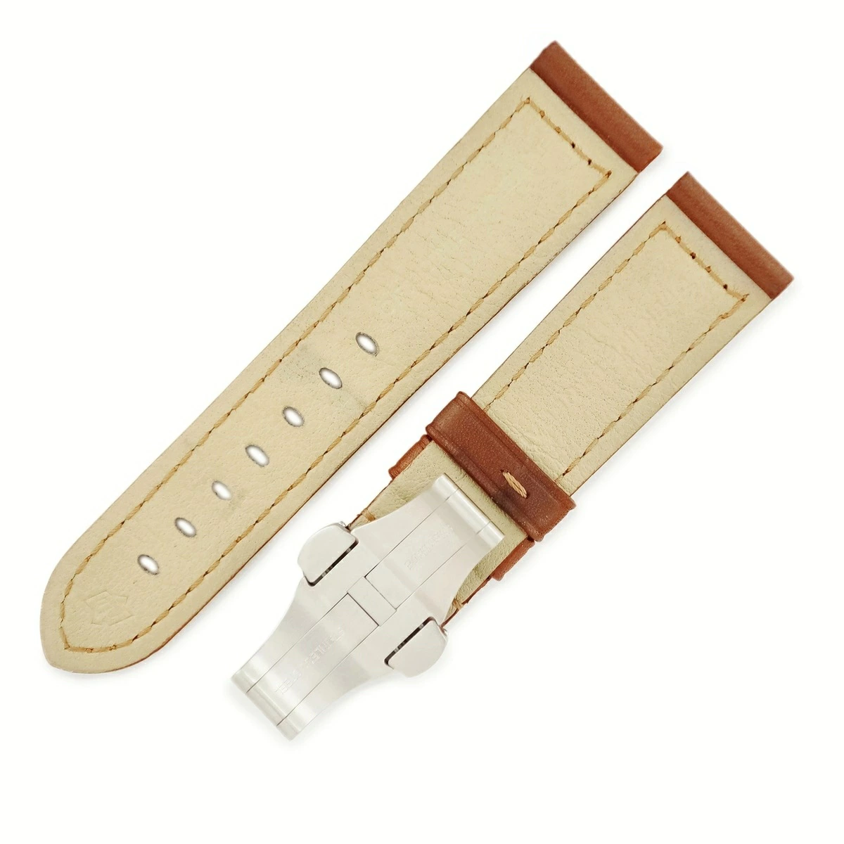 パネライ PANERAI 腕時計パーツ 純正 牛革 ステンレススチール ブラウン 替え レザー 本革 ベルト バンド ストラップ 純正SS製バックル付き 22mm ブラウン 茶 - メンズ定番 人気 美品 【中古】