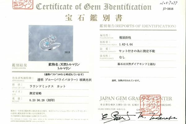 付属品鑑別書(ジャパンジェムグレーディングセンター)