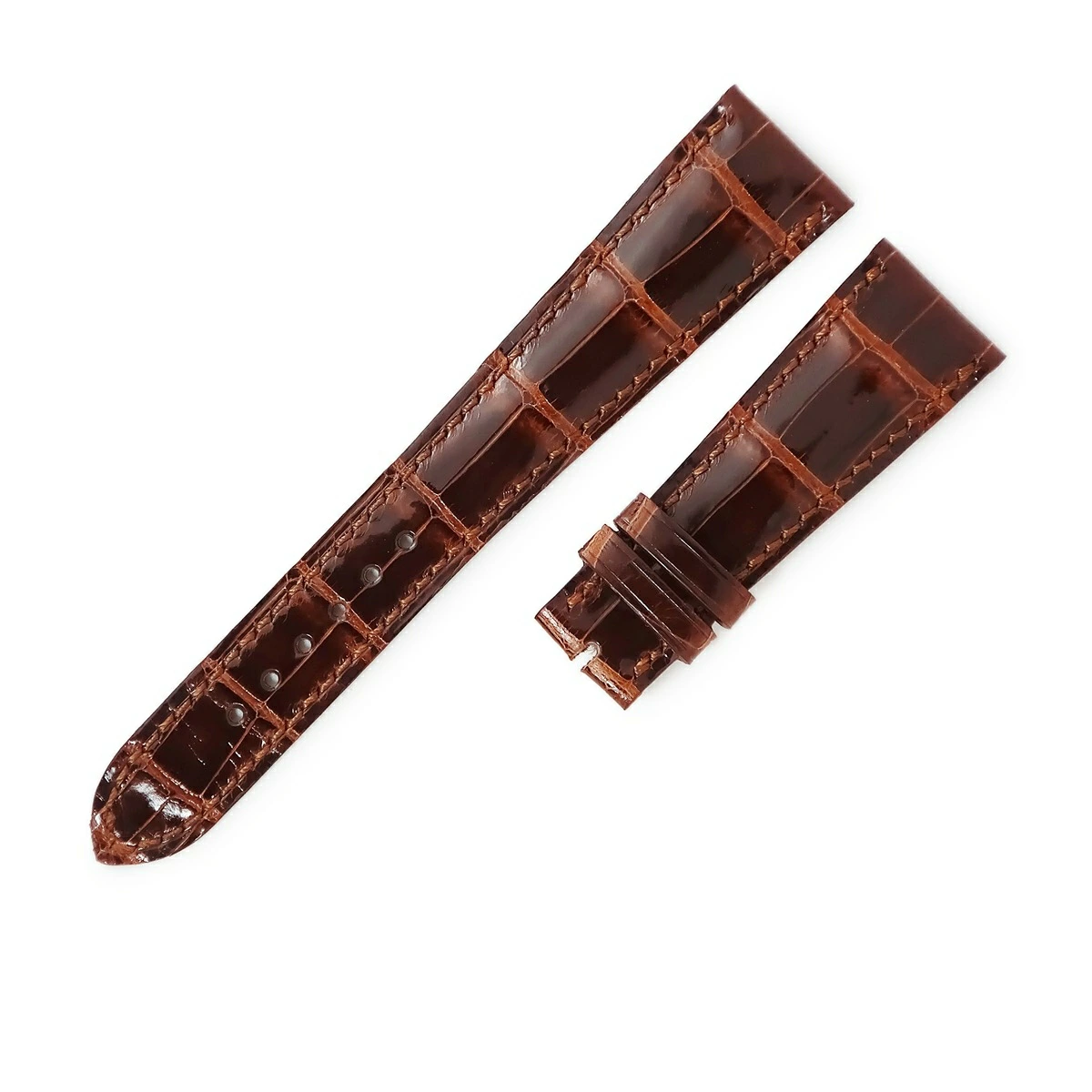 Pre-owned Patek Philippe watch part, genuine brown crocodile leather strap, 21mm, shiny finish, unused.