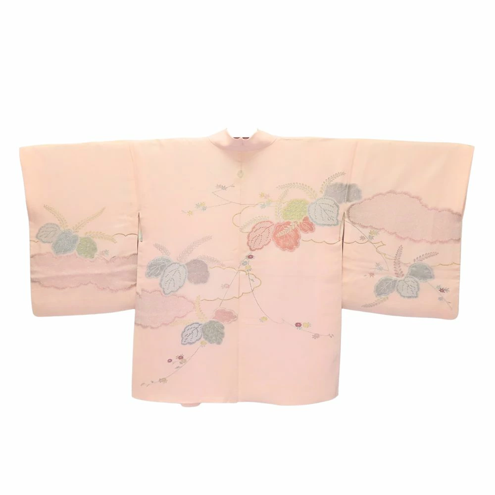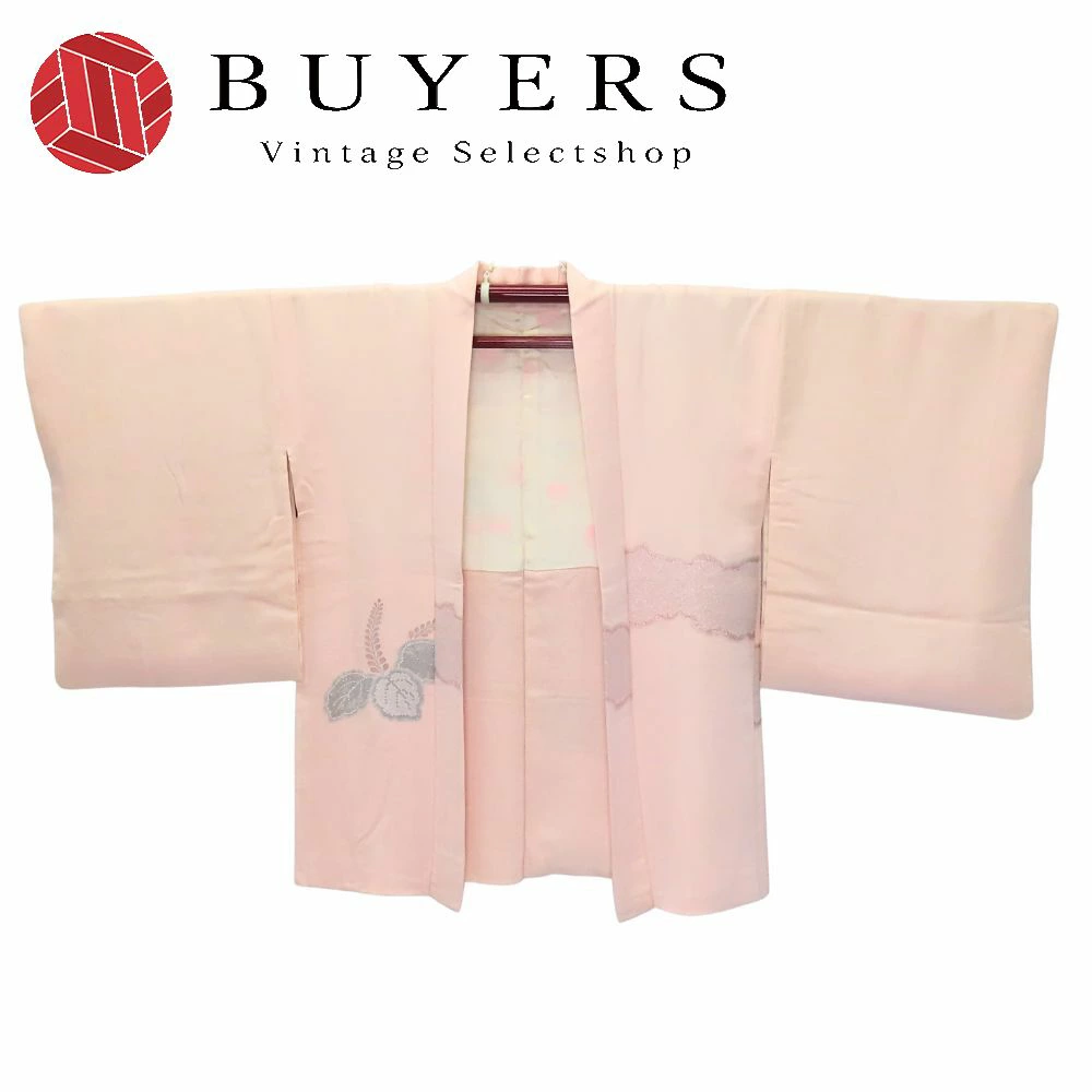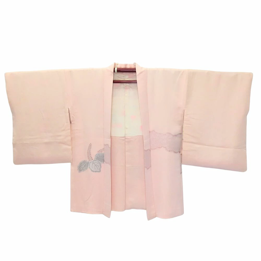 [Pre-owned] Pink Haori (Japanese traditional kimono) made of pure silk (excluding gold and silver threads) with haori cord. Stylish Japanese clothing. Kimono for women.