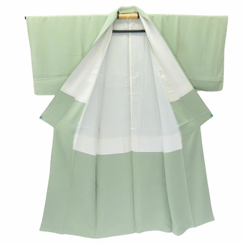 | 品名 | 【中古】 色無地 しつけ糸あり 正絹(金銀糸除く) ライトグリーン くすみカラー フォーマル 1つ紋 レディース 女性 |