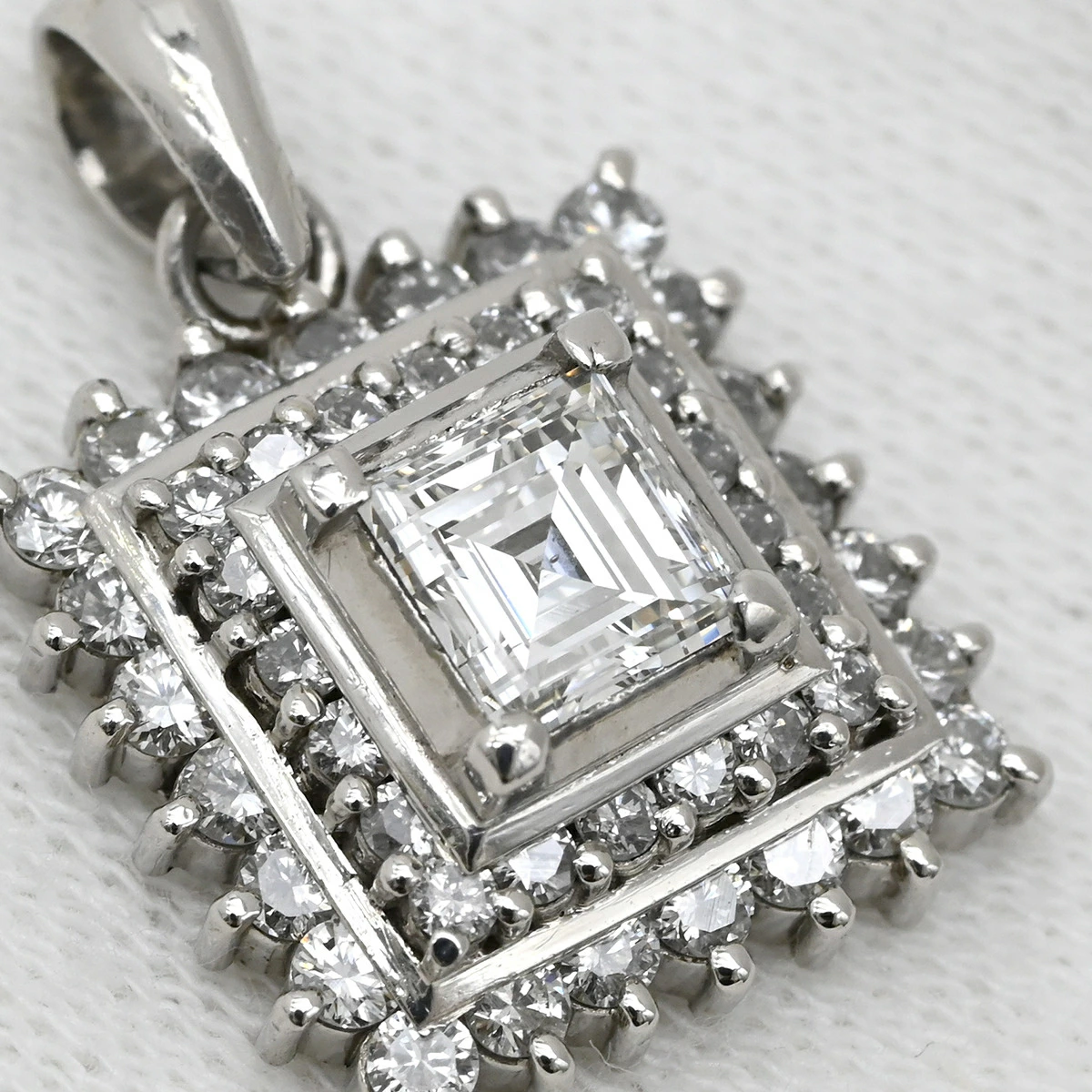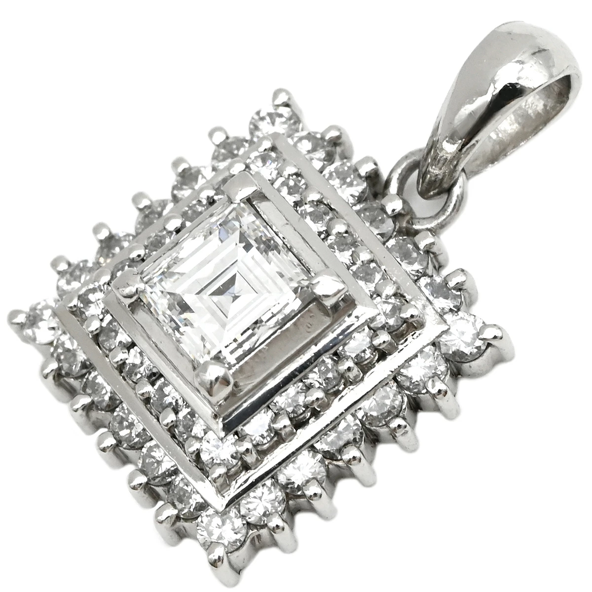 ノンブランド NON BRAND ペンダントトップ SI1 ダイヤモンド 0.6ct Pt900 ダイヤモンド プラチナシルバー スクエアカット 四角 ネックレストップ ペンダントヘッド チャーム プラチナ900 レディース 【中古】