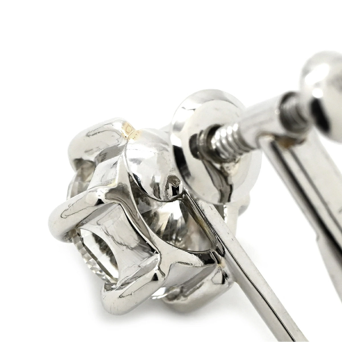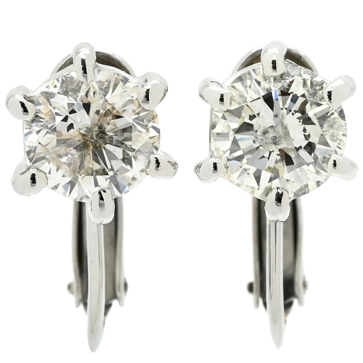 ノンブランド NON BRAND イヤリング 一粒ダイヤモンド Pt900 ダイヤモンド プラチナシルバー ラウンドブリリアントカット 6本爪 1.5カラット プラチナム - レディース 【中古】