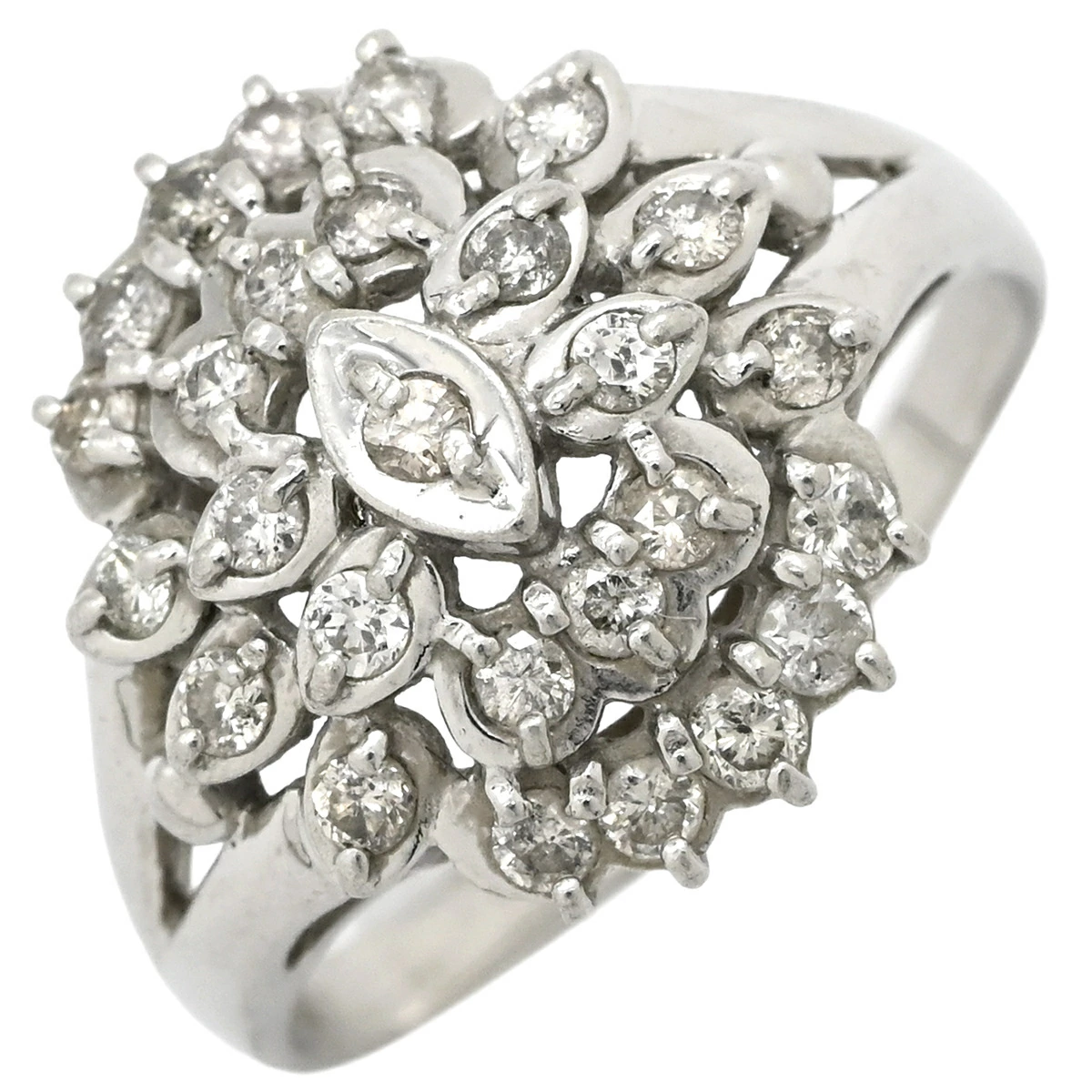 ノンブランド NON BRAND リング 指輪 ダイヤモンド 0.50ct Pt900 ダイヤモンド プラチナシルバー パヴェ フラワー 花モチーフ プラチナ - 12.5号 レディース 【中古】
