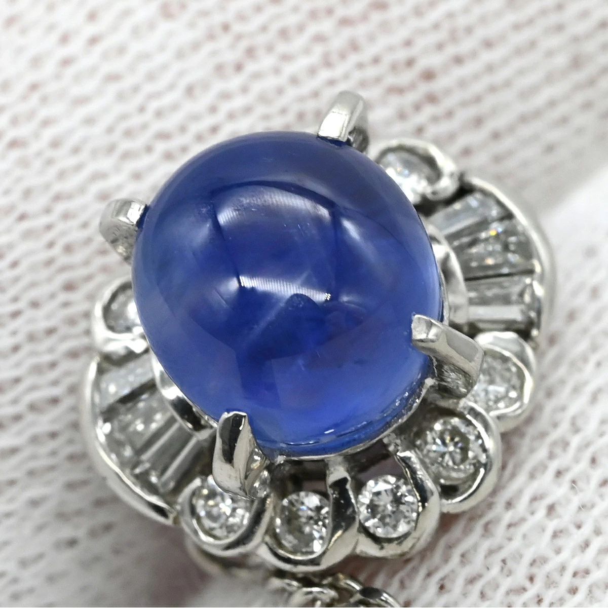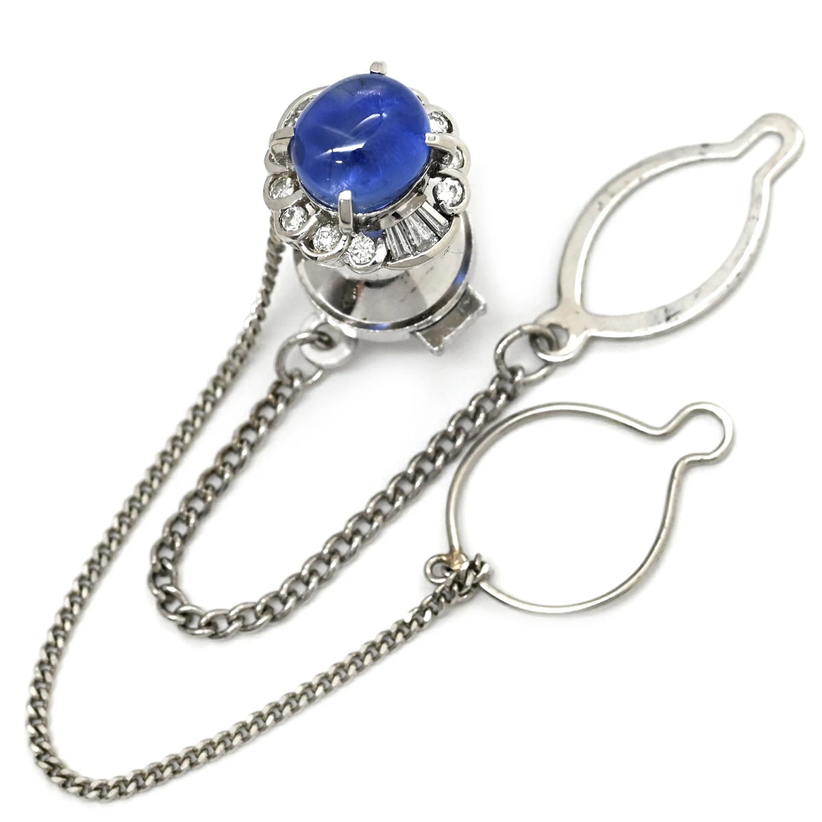 ノンブランド NON BRAND タイピン Pt サファイア ダイヤモンド プラチナシルバー スターサファイア ダイヤモンド プラチナ タイタックピン 青 オーバル - メンズ定番 人気 美品 【中古】