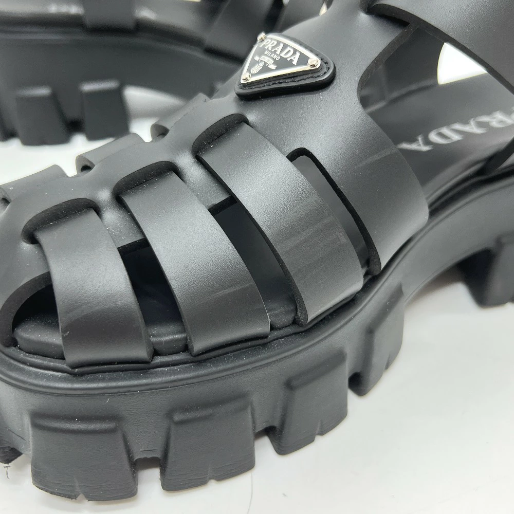 | 商品説明 | レトロなビーチサンダルを再解釈した、プラダのモノリス フォームラバーサンダル。アイコニックなトライアングルロゴと、軽量ながらボリュームのある厚底ソールが特徴です。足元にモードな存在感をプラスする、ハイブリッドなデザインが魅力です。 |