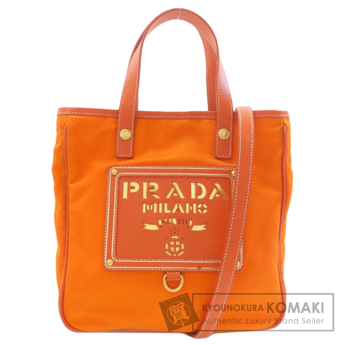 レディースハンドバッグPRADAカラー:オレンジ系ナイロン素材コンディションABランク