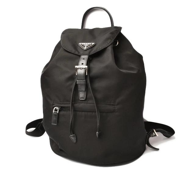 PRADAより、人気のリュックサックです。ナイロン素材で、軽量で持ち運びやすいサイズ。カジュアルな服装にも最適です!トライアングルプレートがデザインされており、存在感があります。