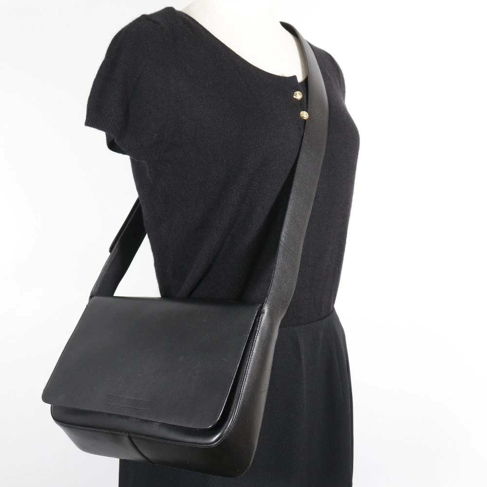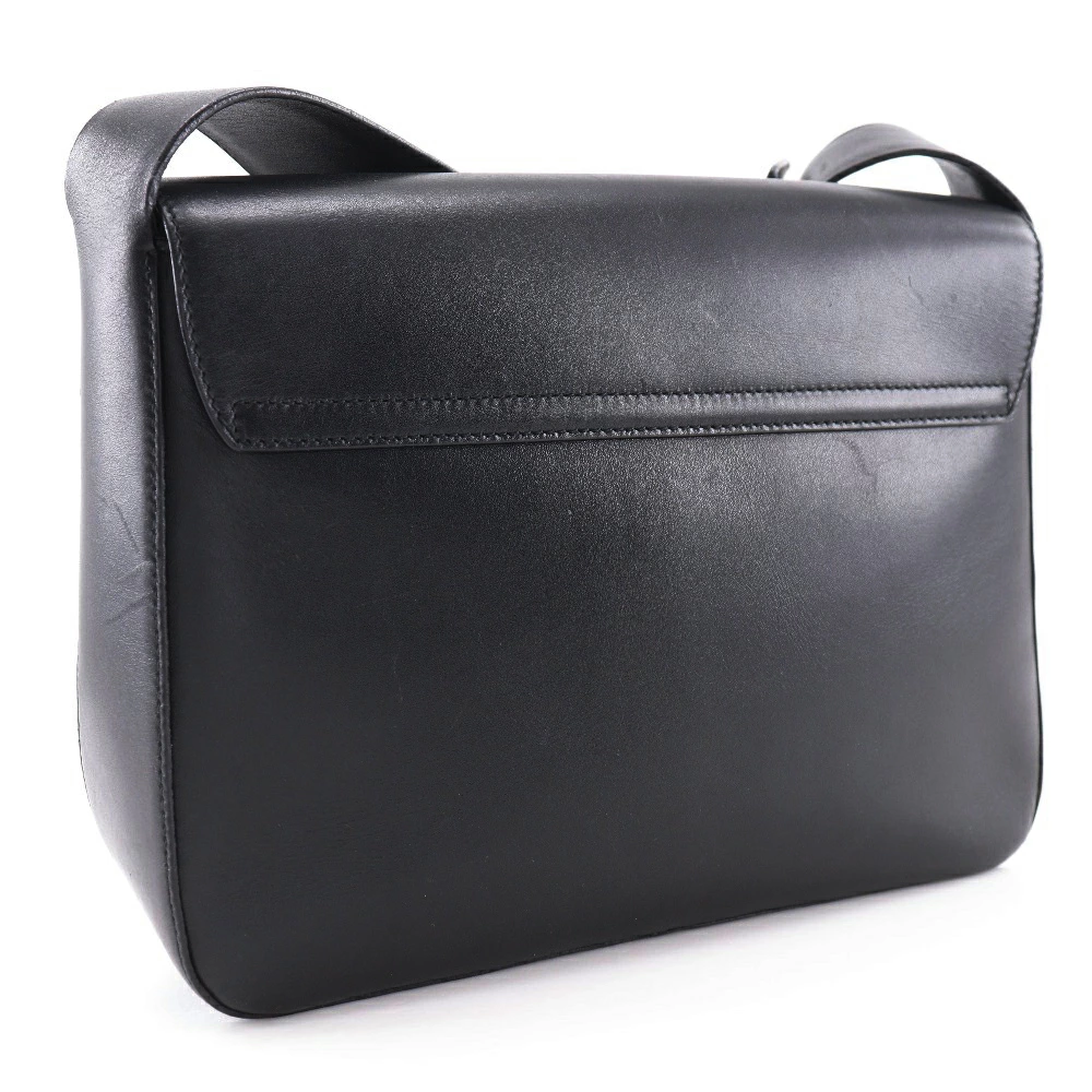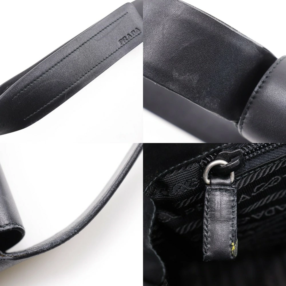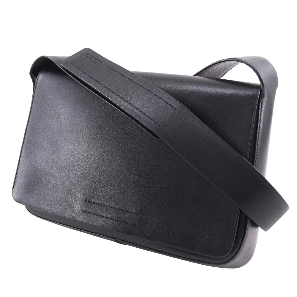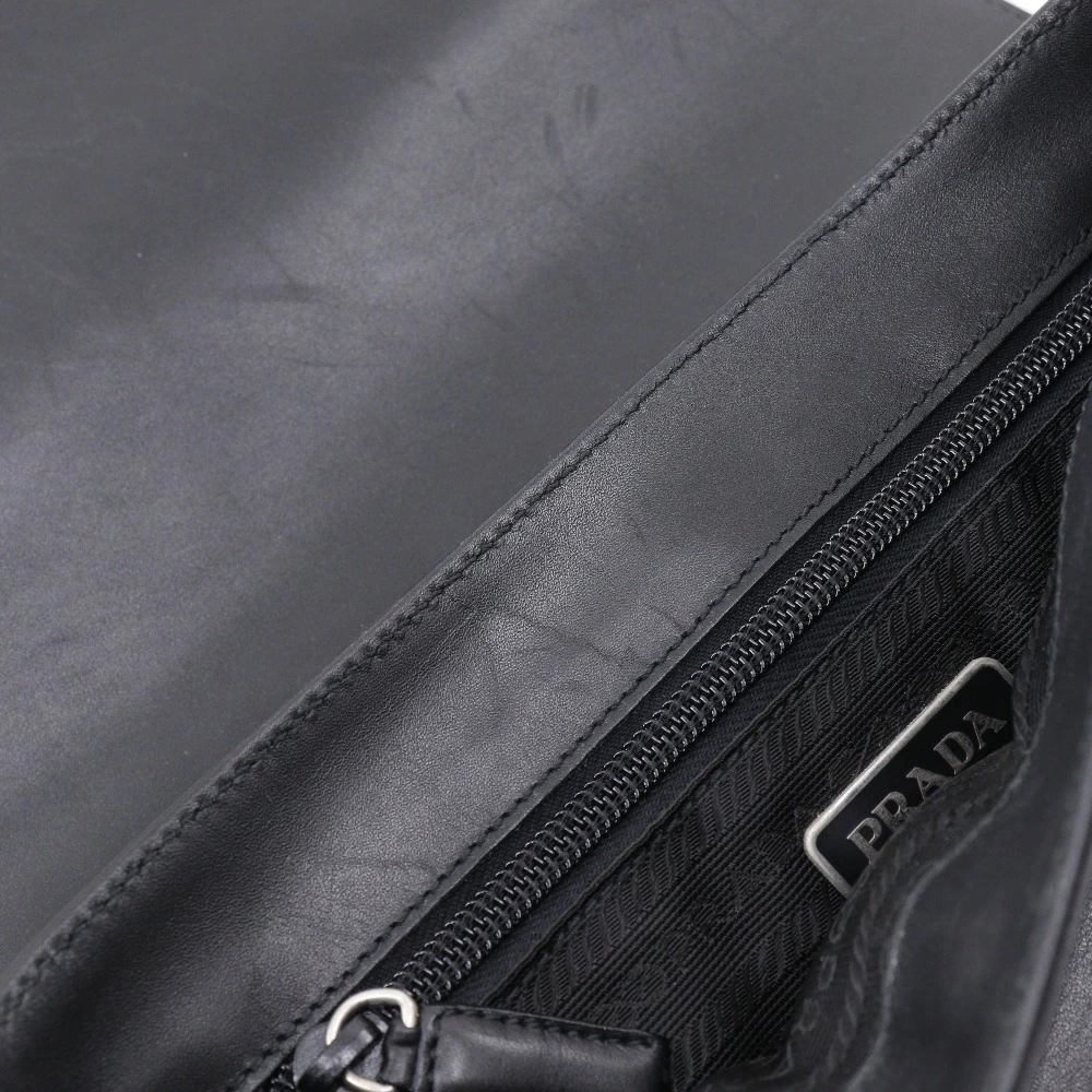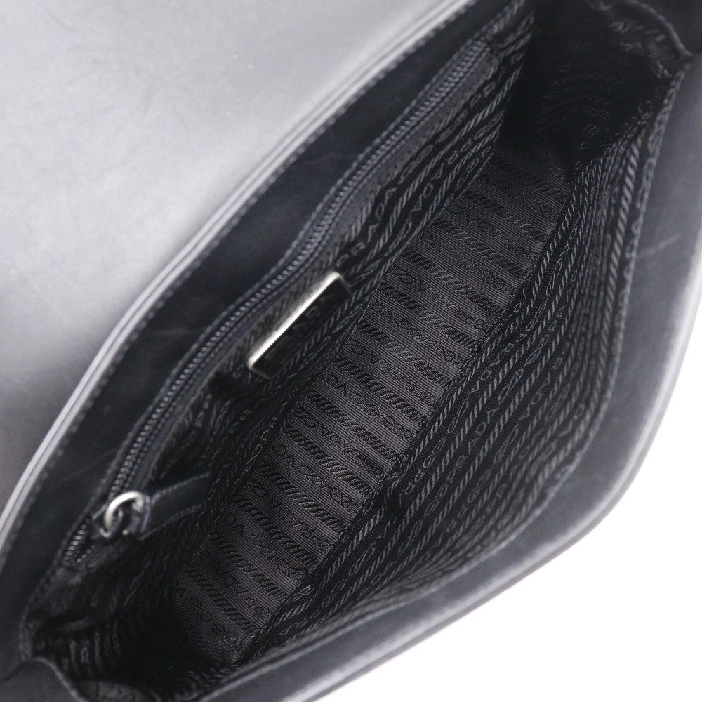 Pre-owned Prada calfskin shoulder bag, made in Italy, black, crossbody, Velcro closure, unisex.