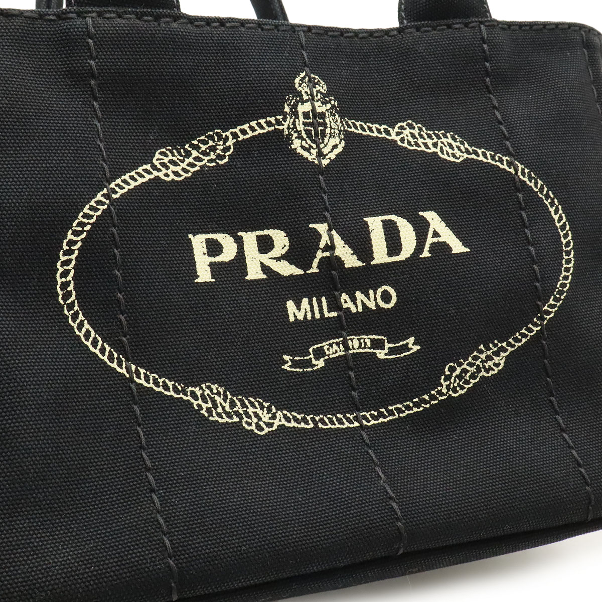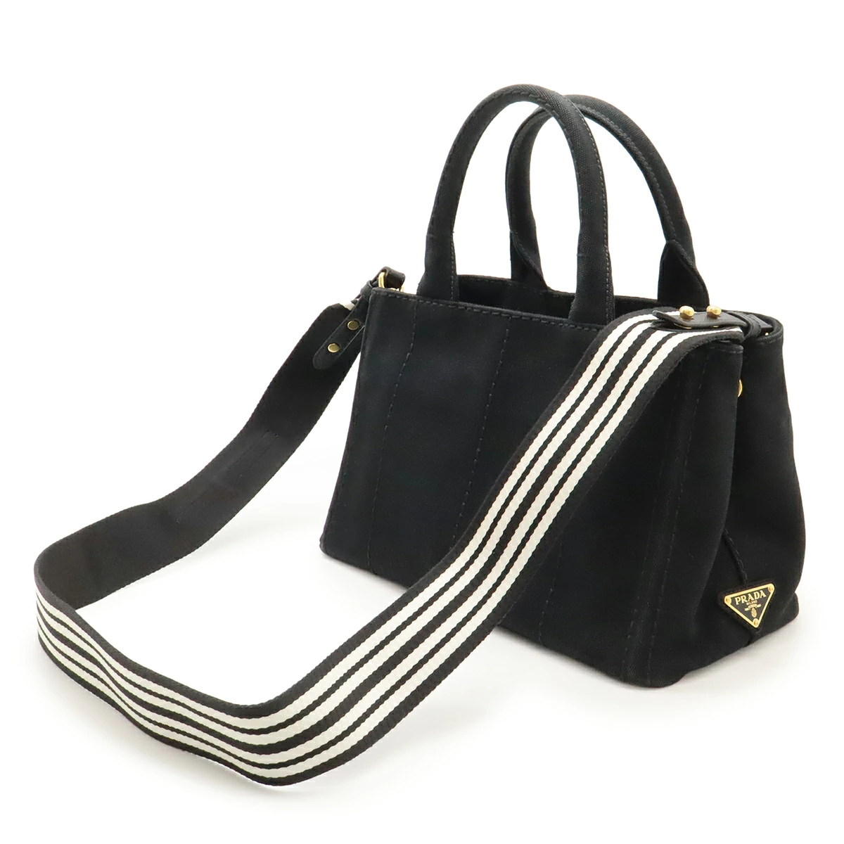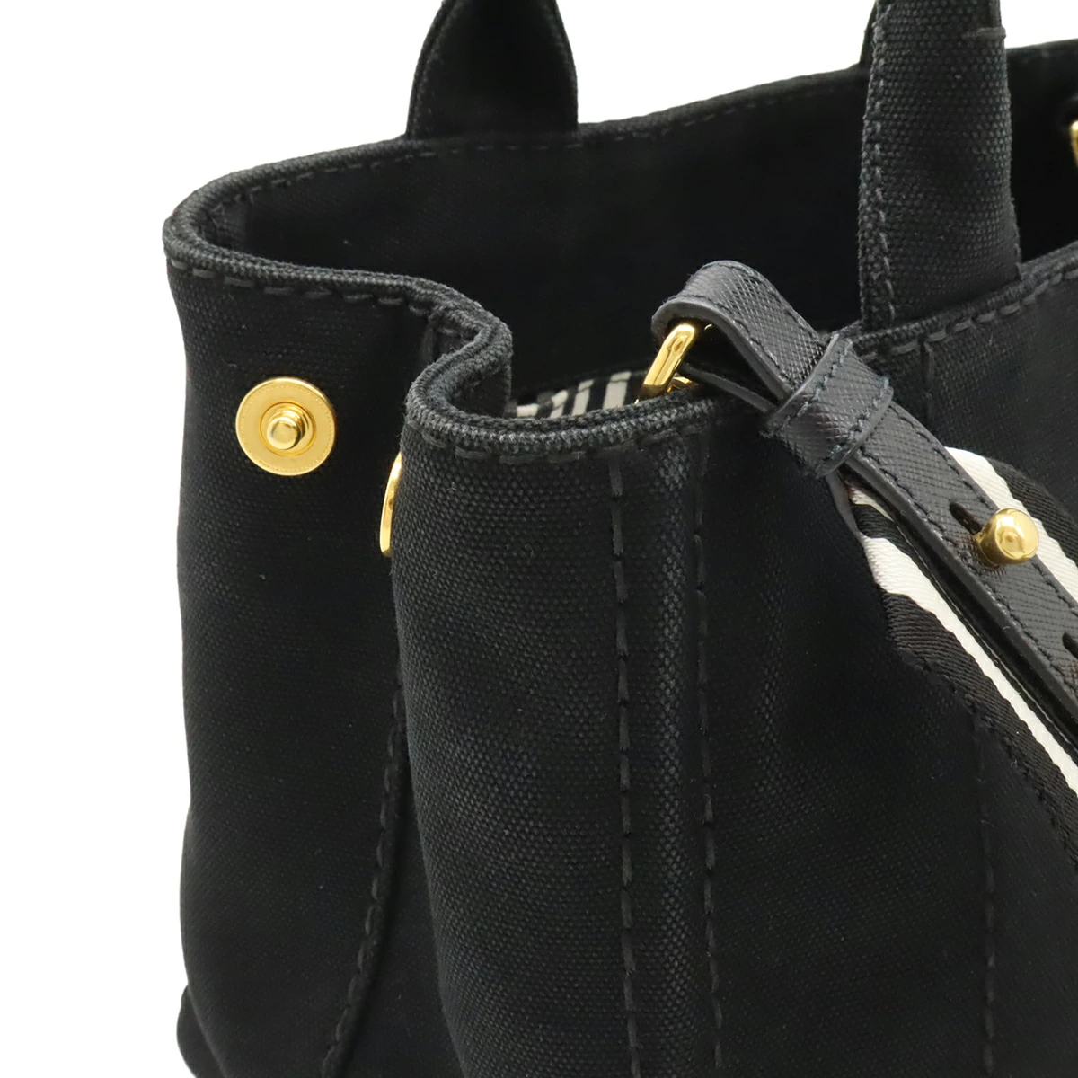 Pre-owned Prada Canapa Tote Bag, 2-Way Shoulder Bag, Striped Canvas, Black, 1BG439, Duty-Free Purchase.