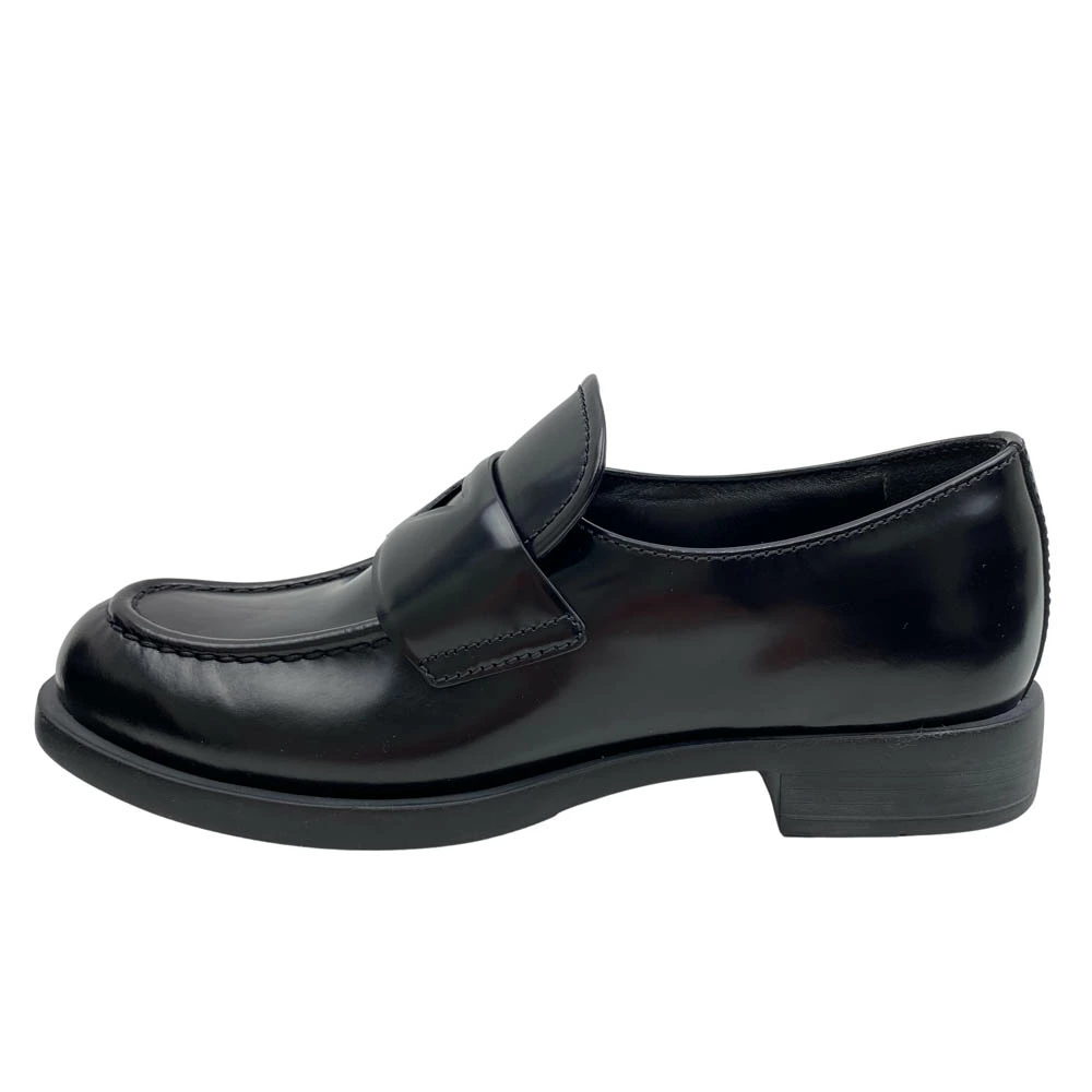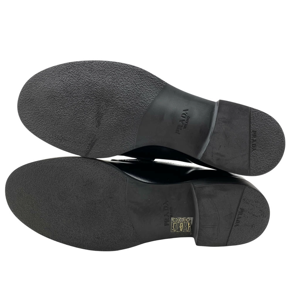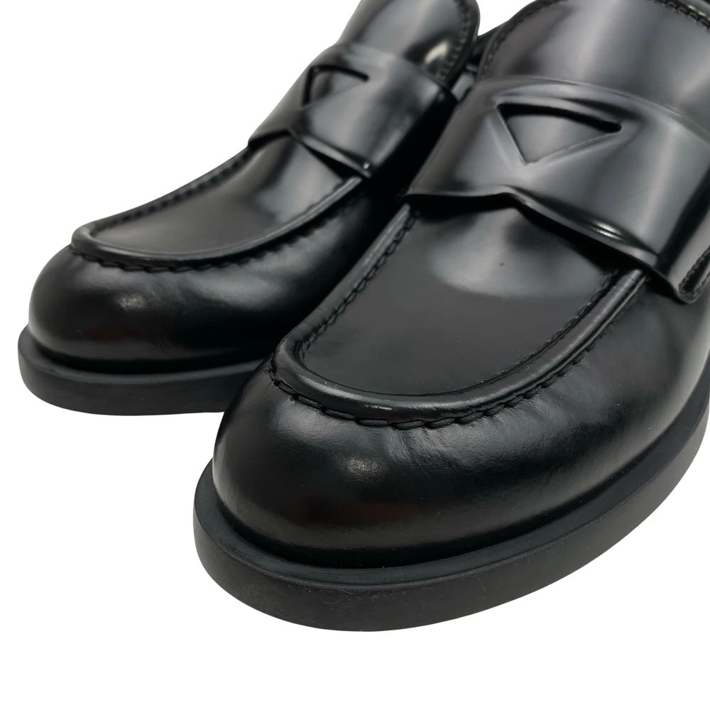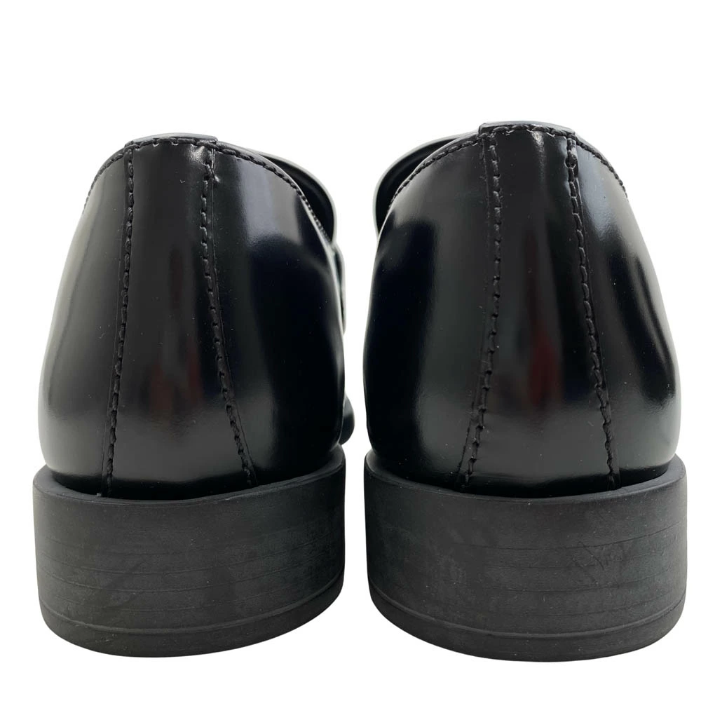 Pre-owned PRADA DNC725 leather loafers, black, size 36, in excellent condition.