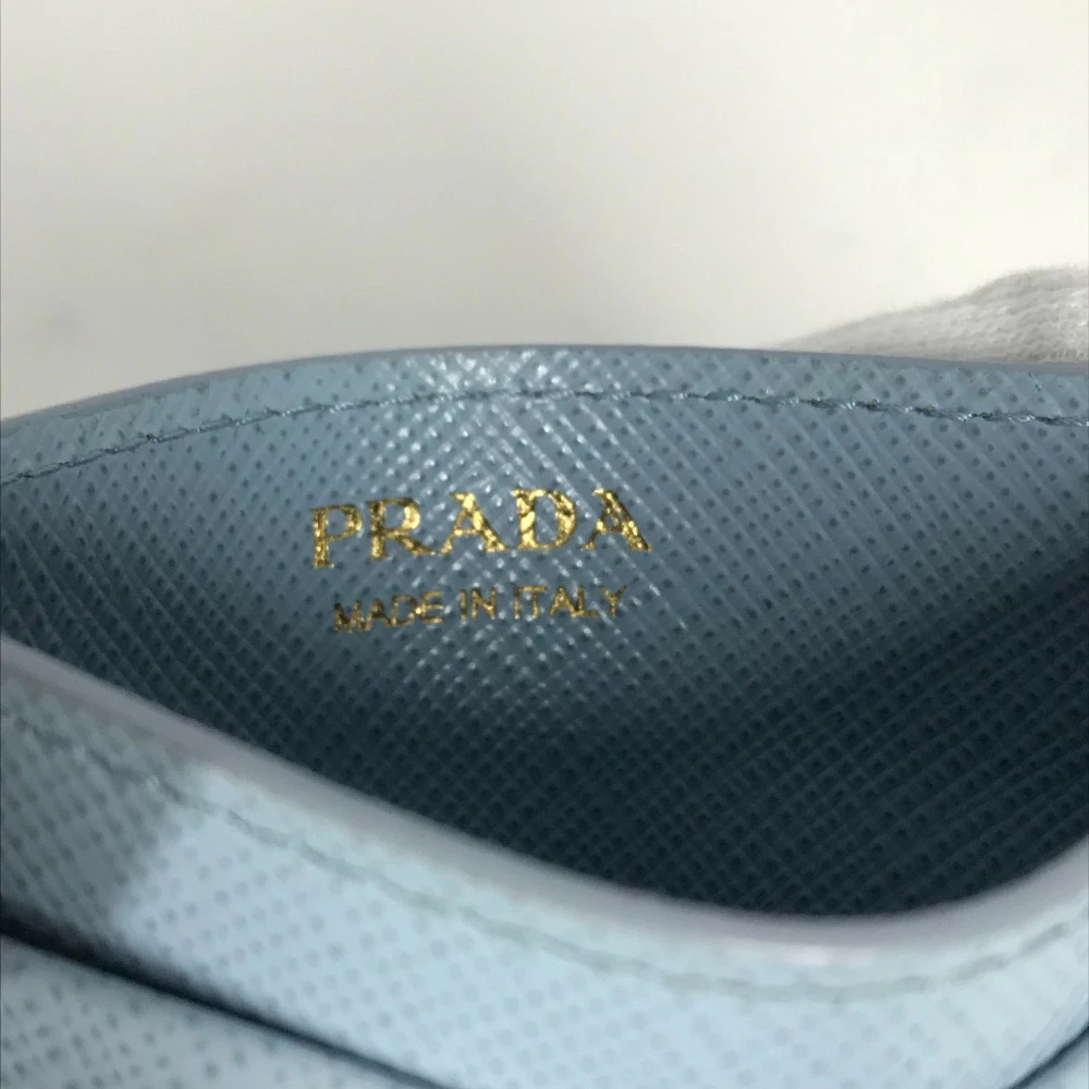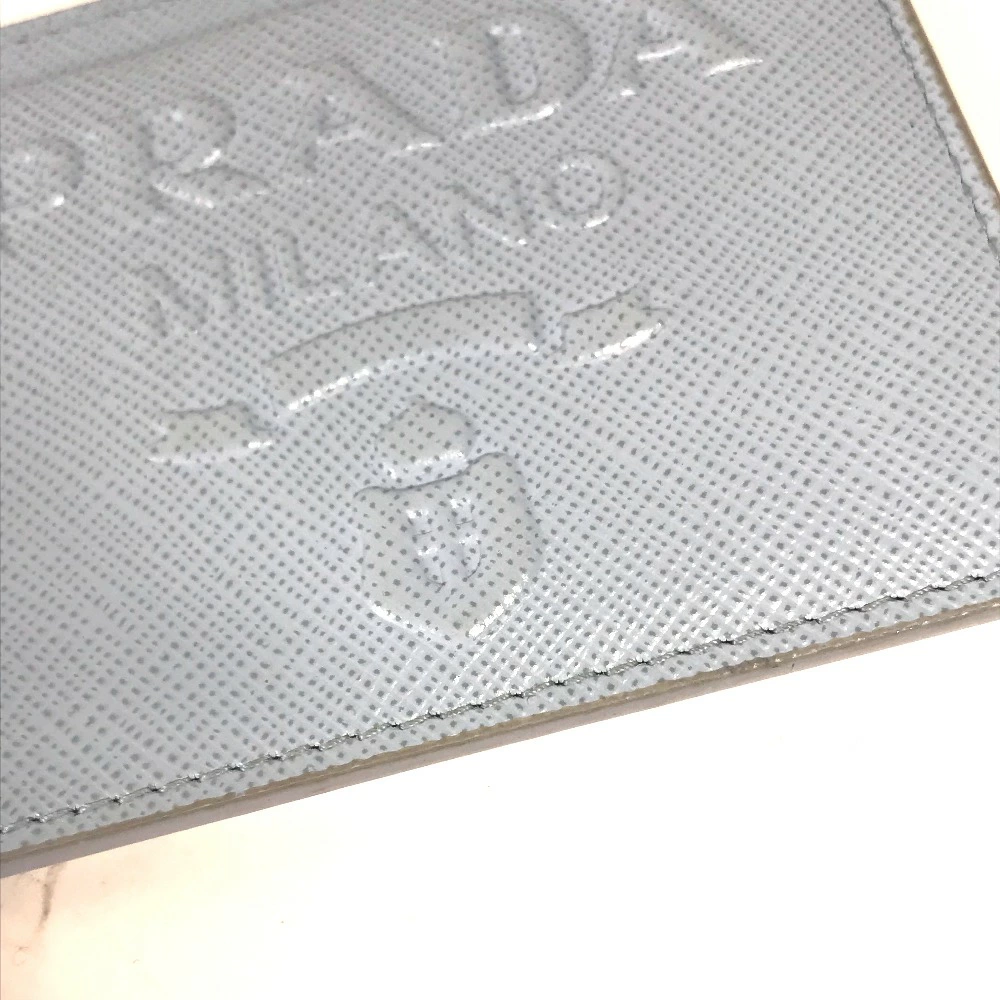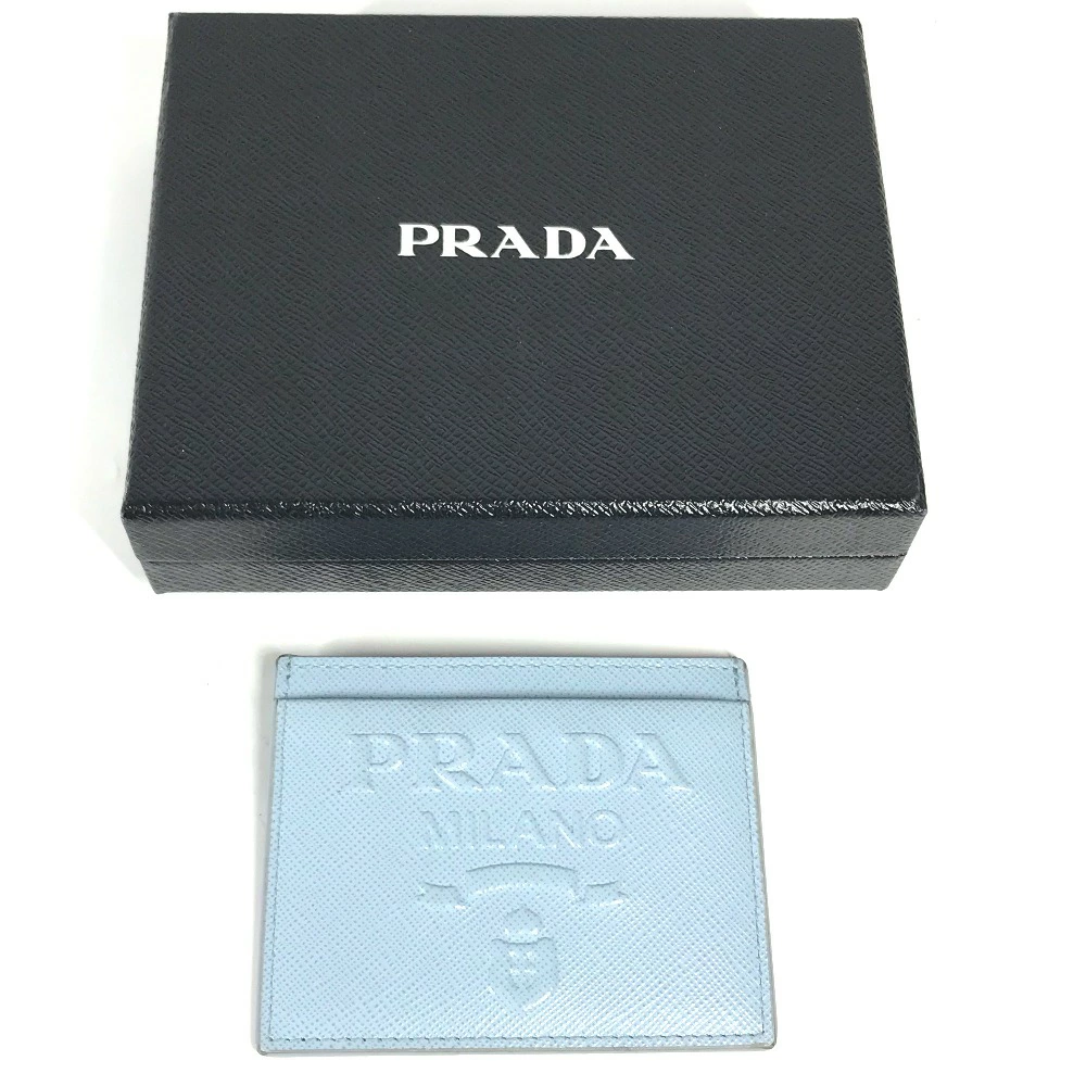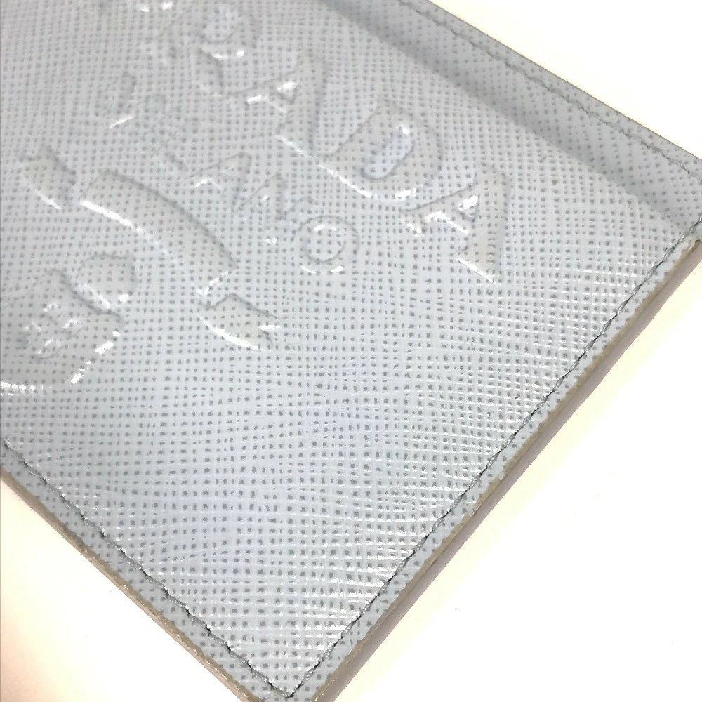 Pre-owned Prada embossed logo business card holder, pass case, and card case in light blue leather for women.