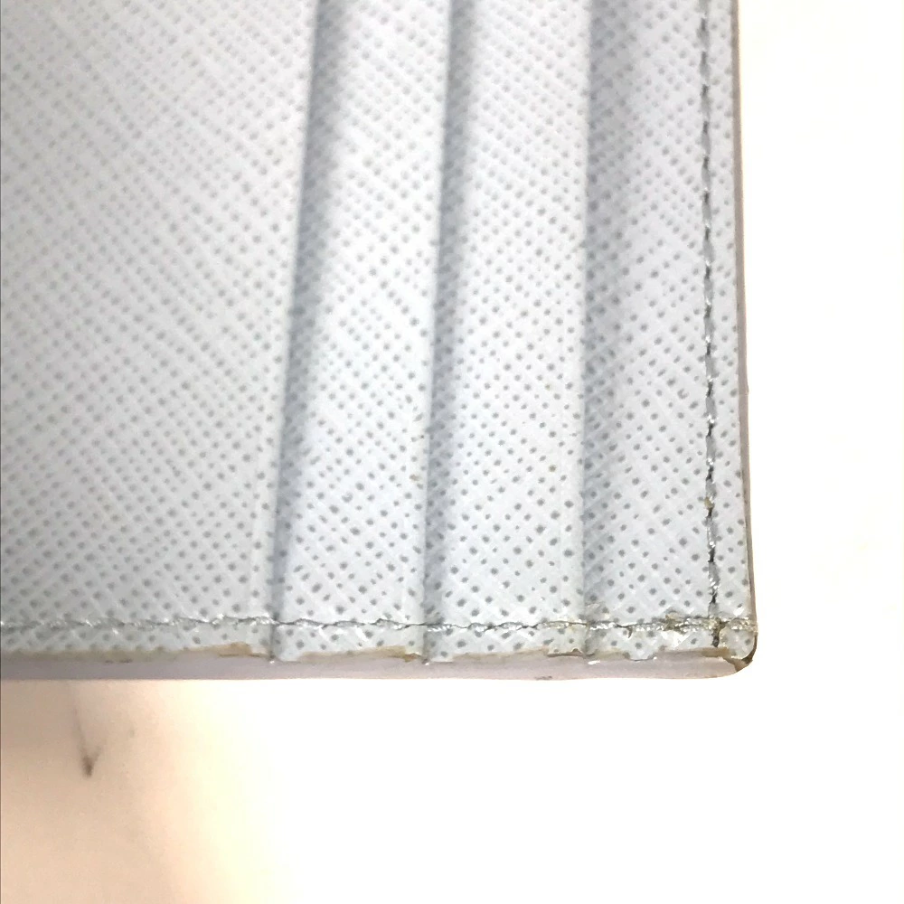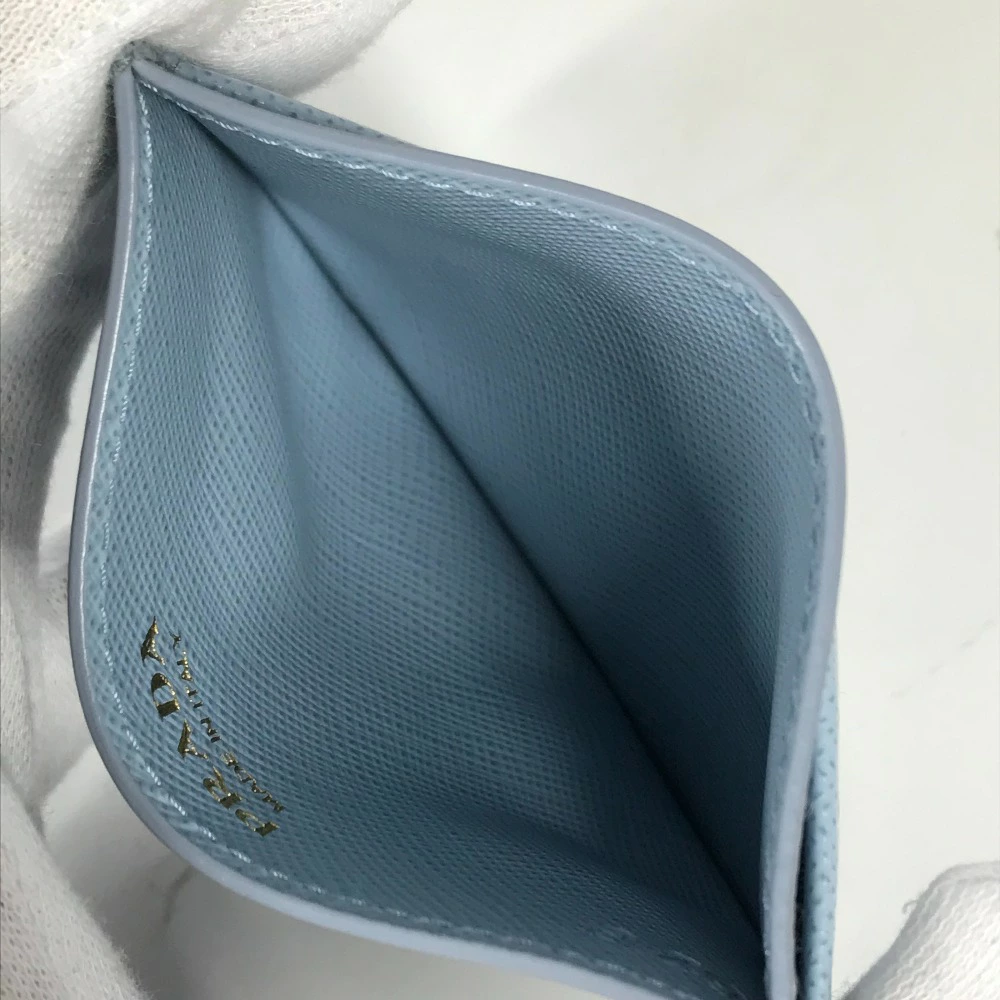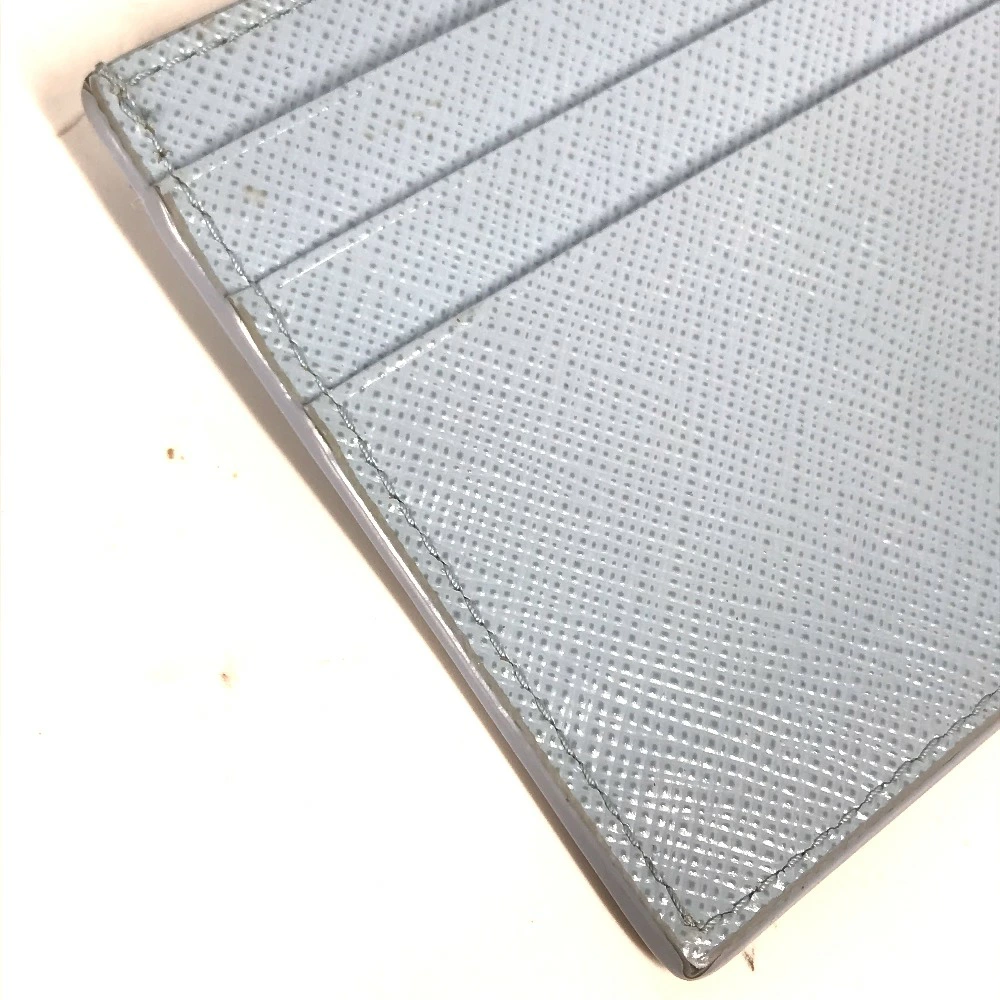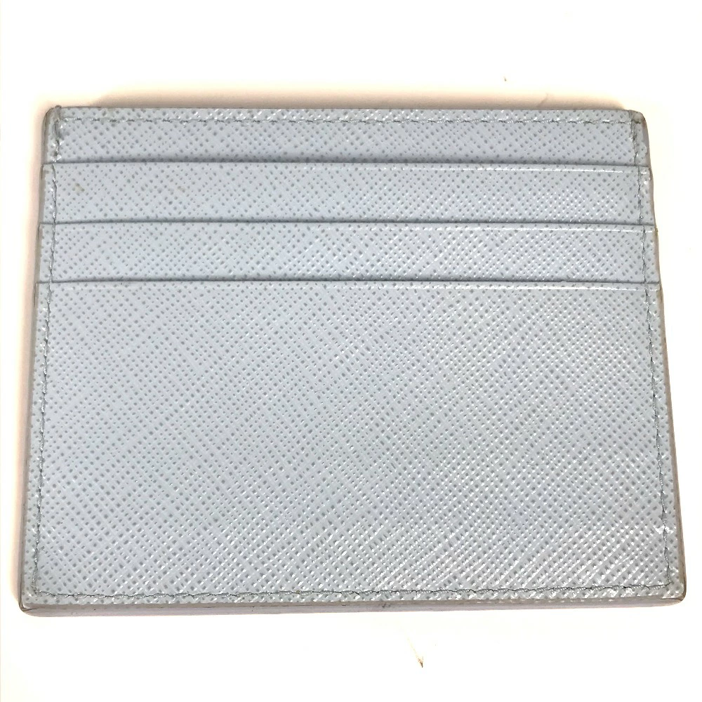 Pre-owned Prada embossed logo business card holder, pass case, and card case in light blue leather for women.
