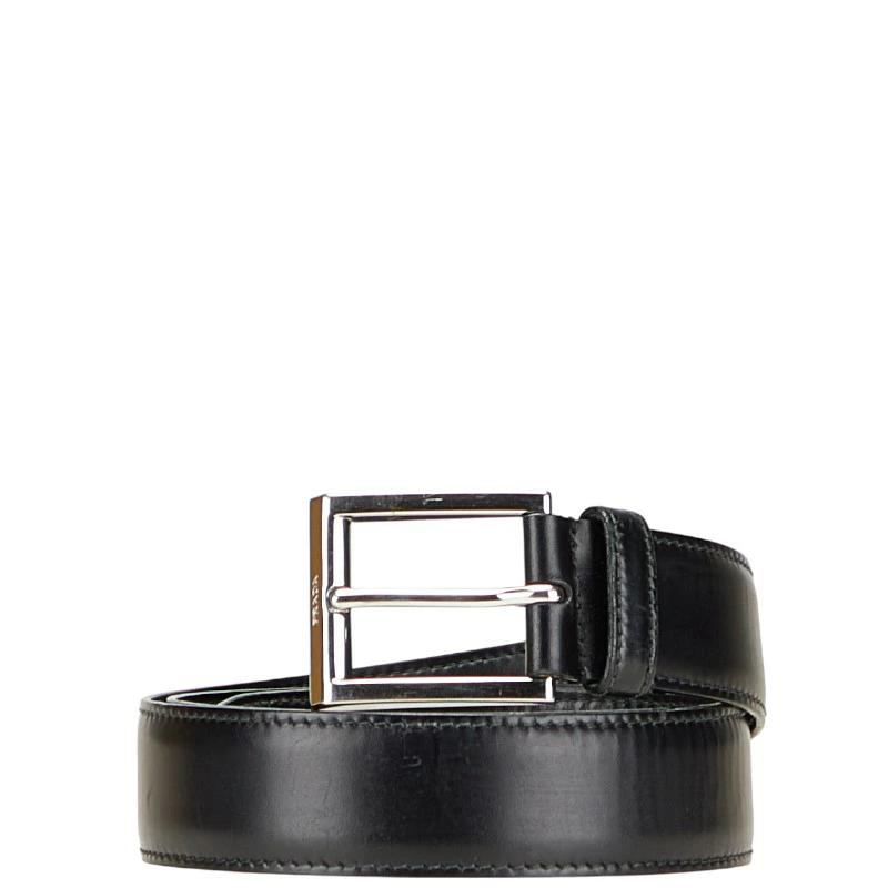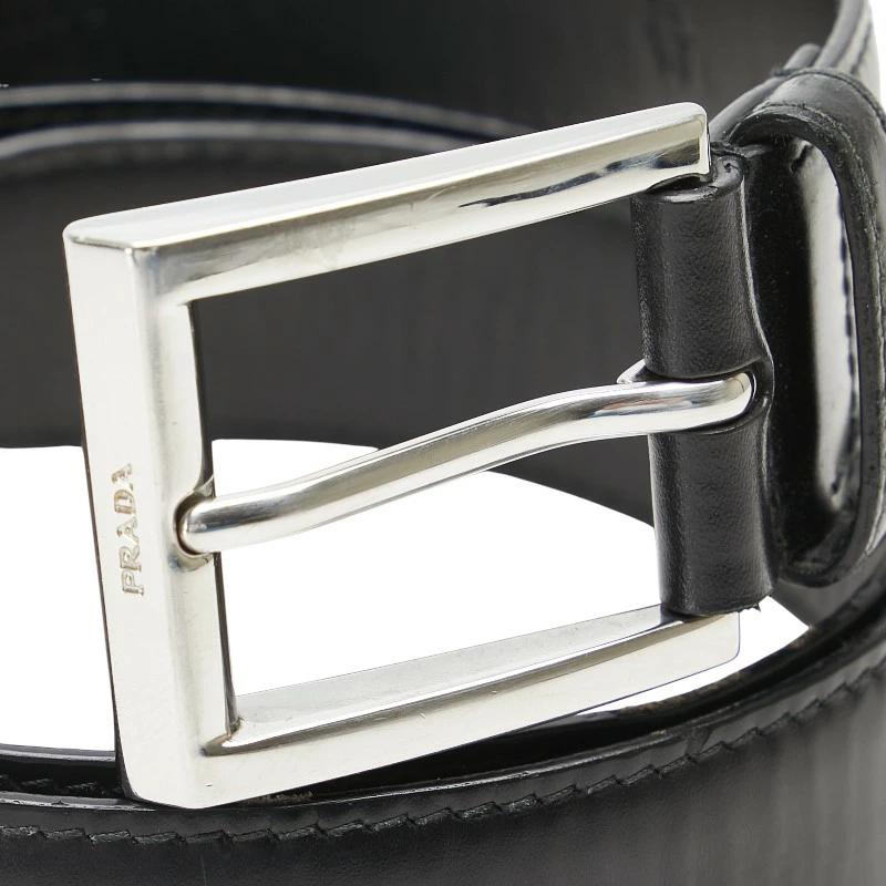 Pre-owned Prada logo belt, size 36/90, black leather, men's.