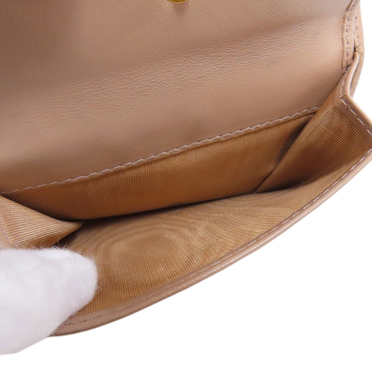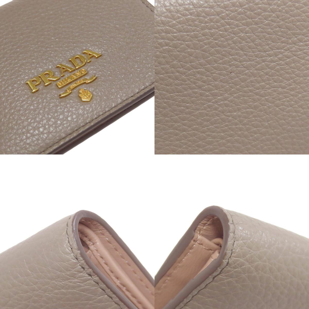レディース二つ折り財布(小銭入れあり)PRADAカラー:ベージュ系レザーコンディションAB+(ABプラス)ランク