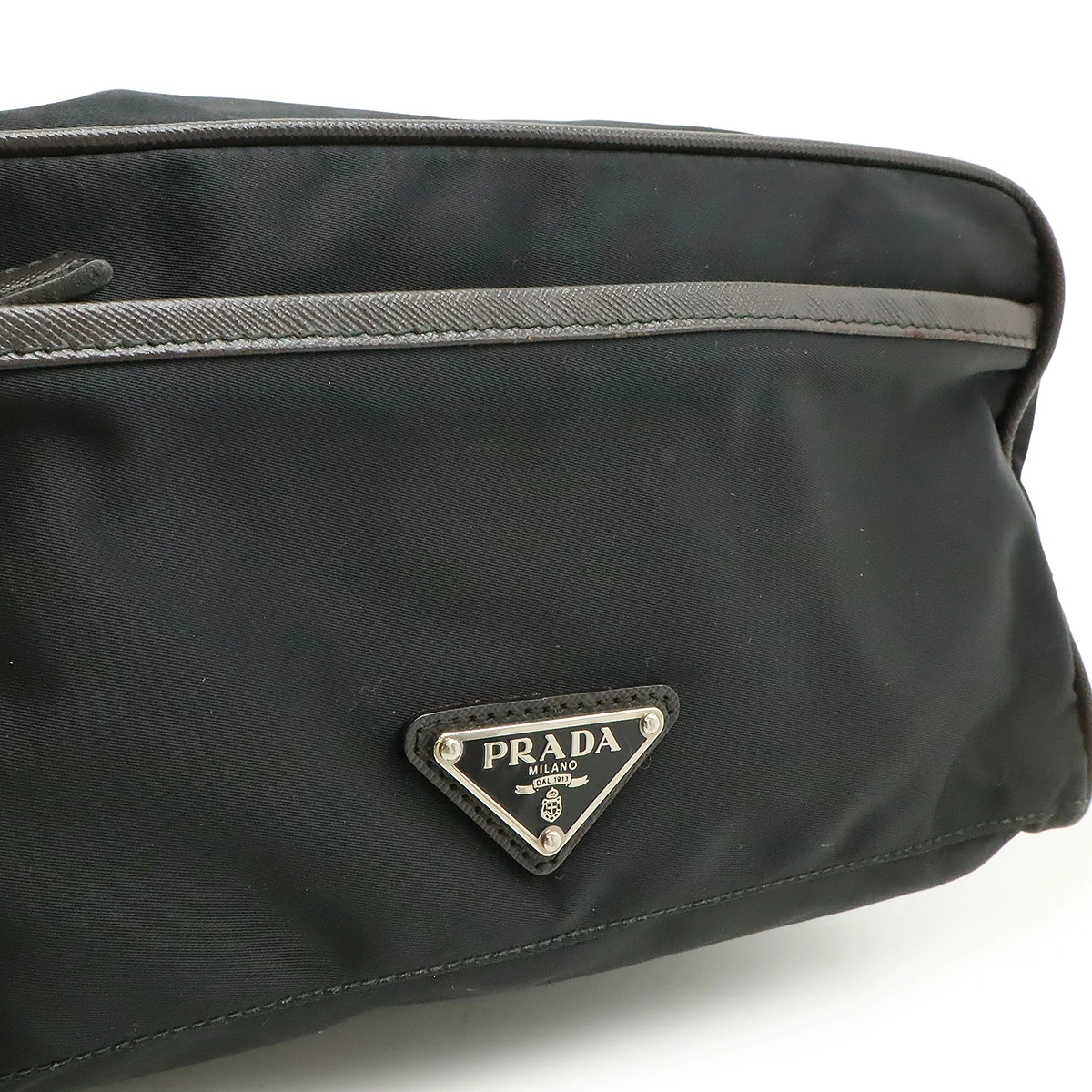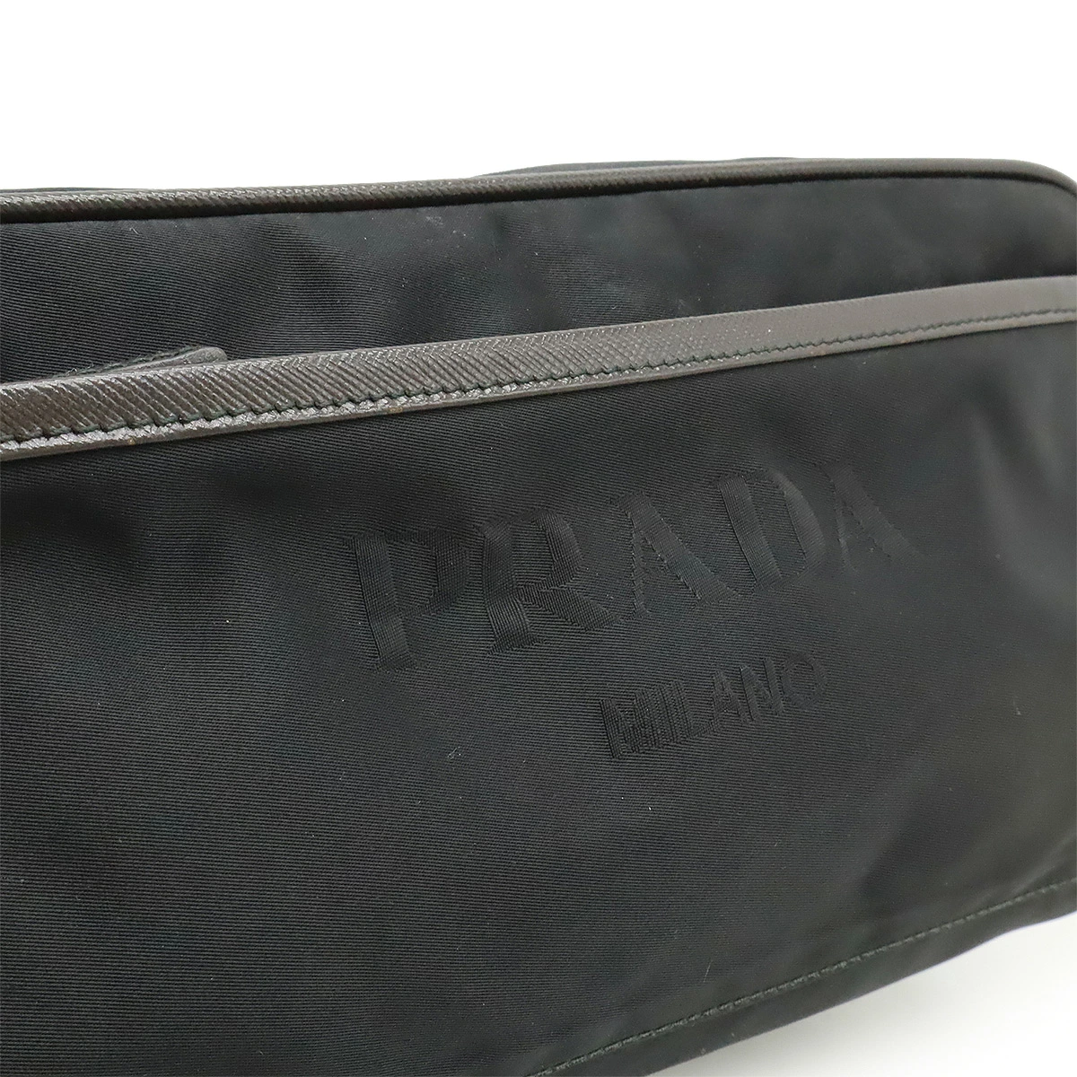 ナイロンのブラックボディにプラダを象徴するロゴが採用された定番デザイン。