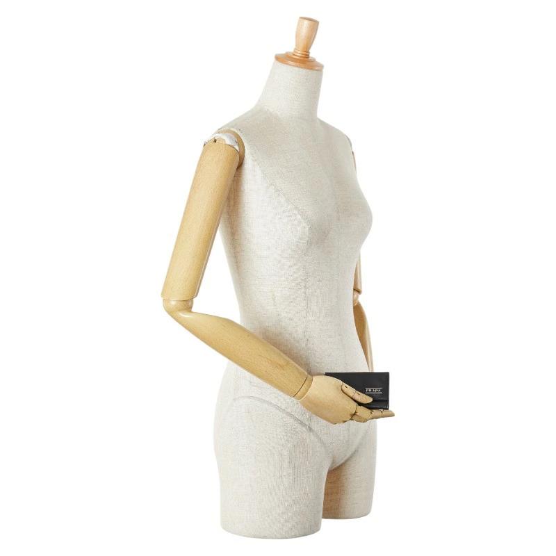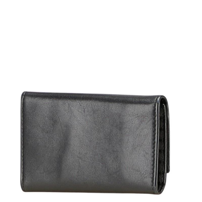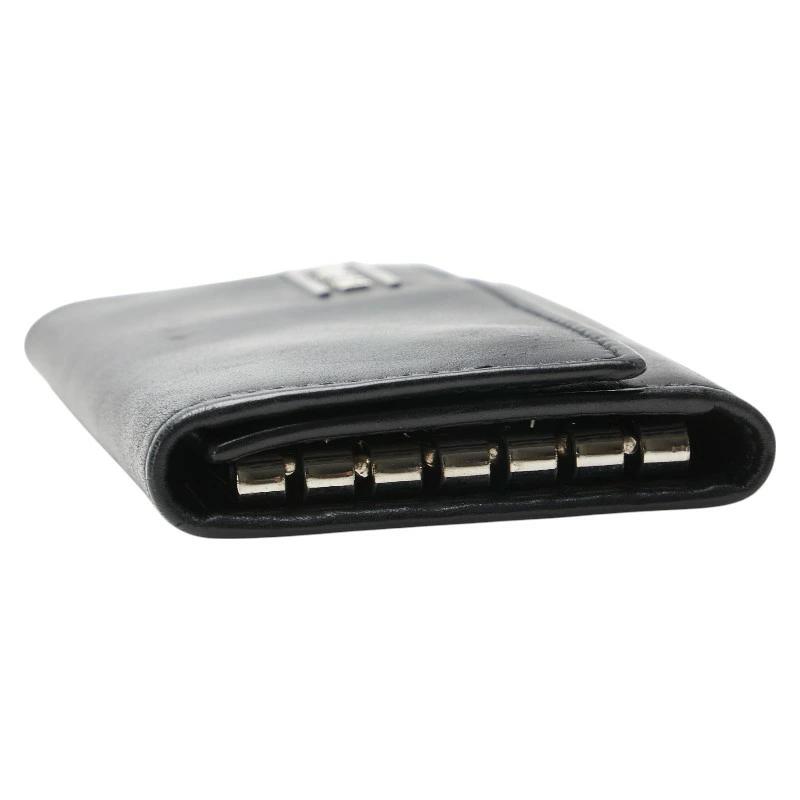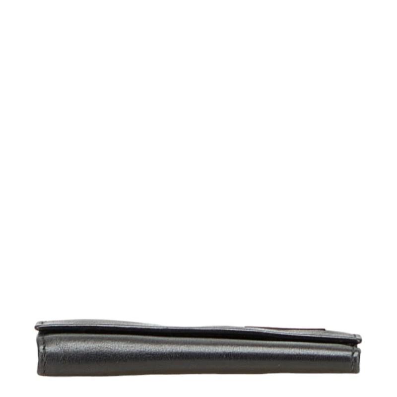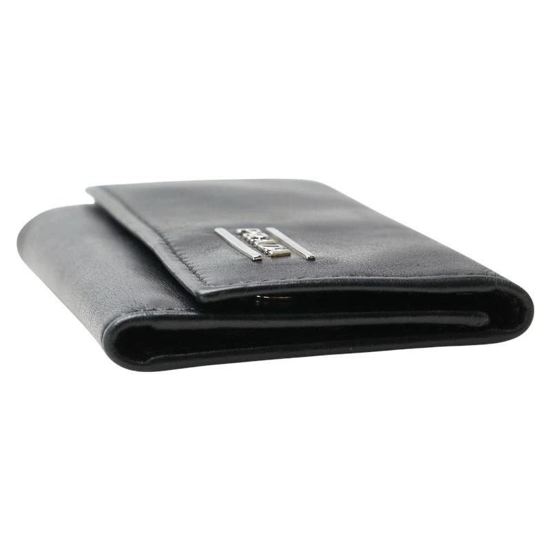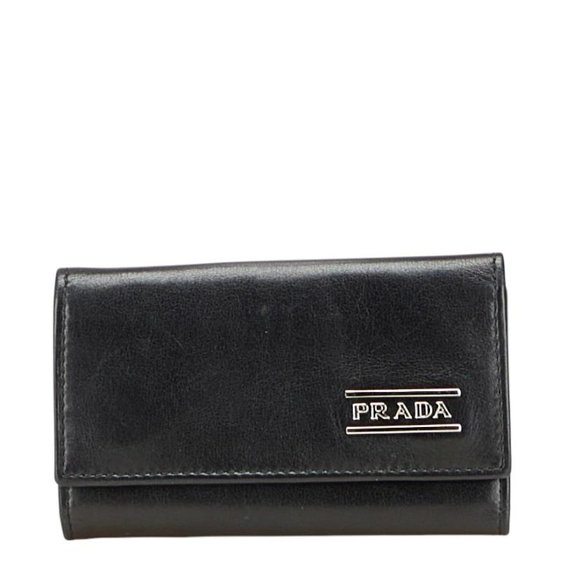 Pre-owned Prada logo metal 6-ring key case in black leather for women.