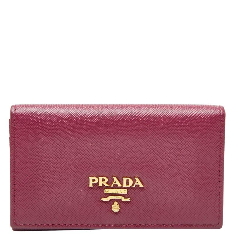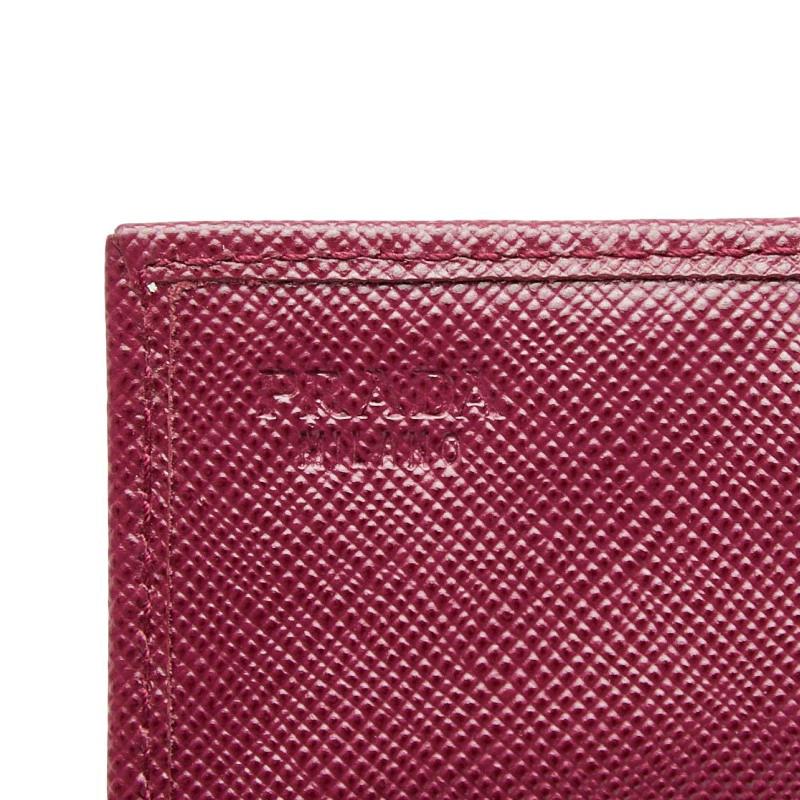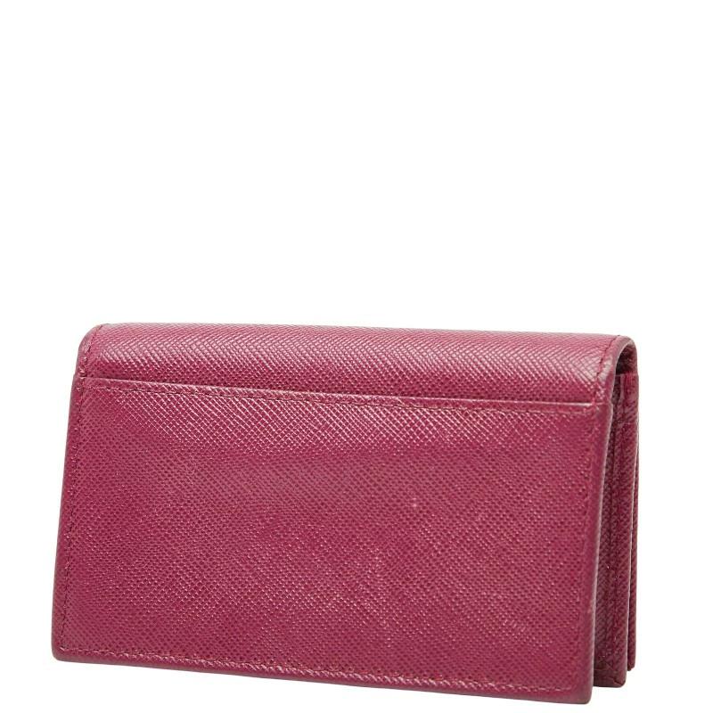 Pre-owned Prada purple Saffiano leather coin case/pass case for women.