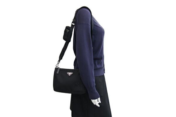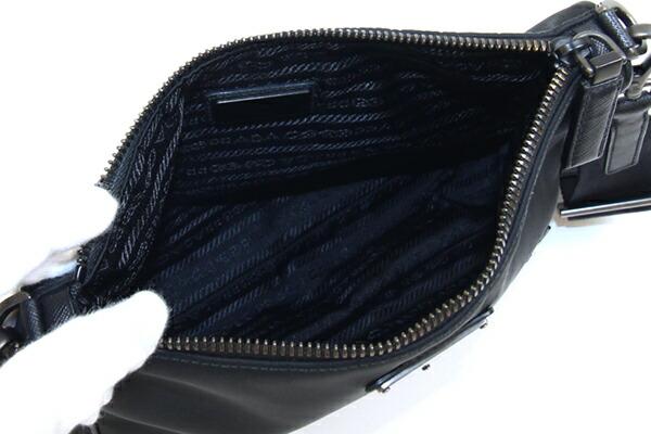 プラダショルダーバッグRe-Nylonショルダーバッグ2VH113ブラックリサイクルポリアミドサフィアーノレザー中古斜め掛けクロスボディロゴリナイロンポーチ付メンズレディースPRADA
