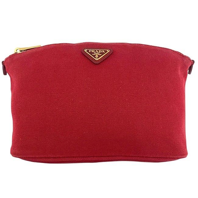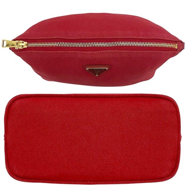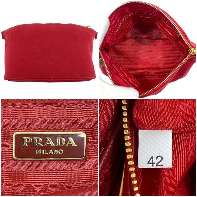 ☆---- 商品について ----☆プラダ ポーチ ec-23779 レッド ROSSO カナパ 1N1857 美品 キャンバス レザー 中古 42 PRADA ファスナー 赤 三角 ロゴ プレート コスメ 化粧ポーチ レディース メンズ 男女兼用 定番 人気 キャンバスポーチ CANAPA シンプル ロゴプレート ブランド 本物 鑑定済