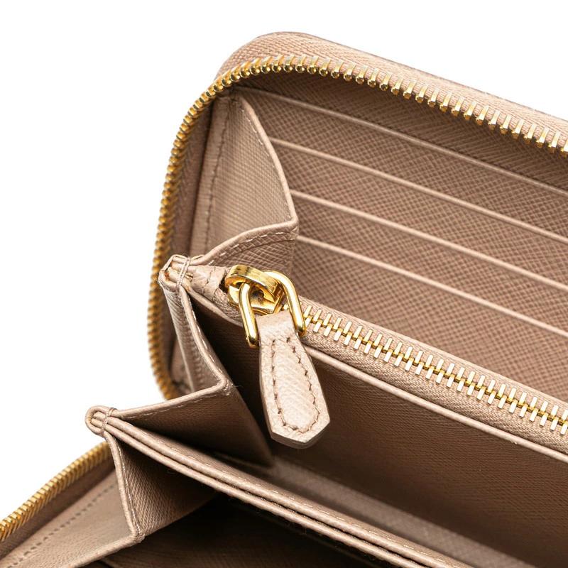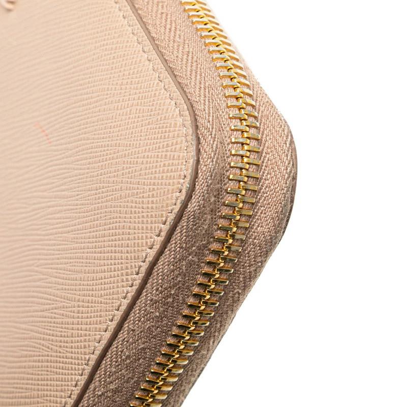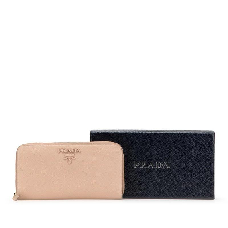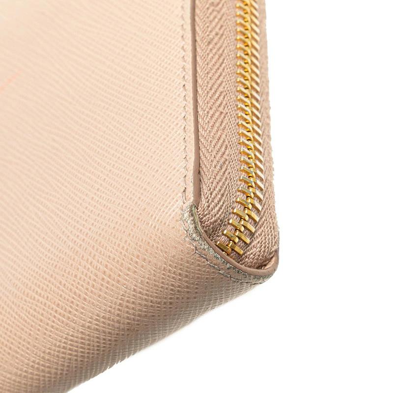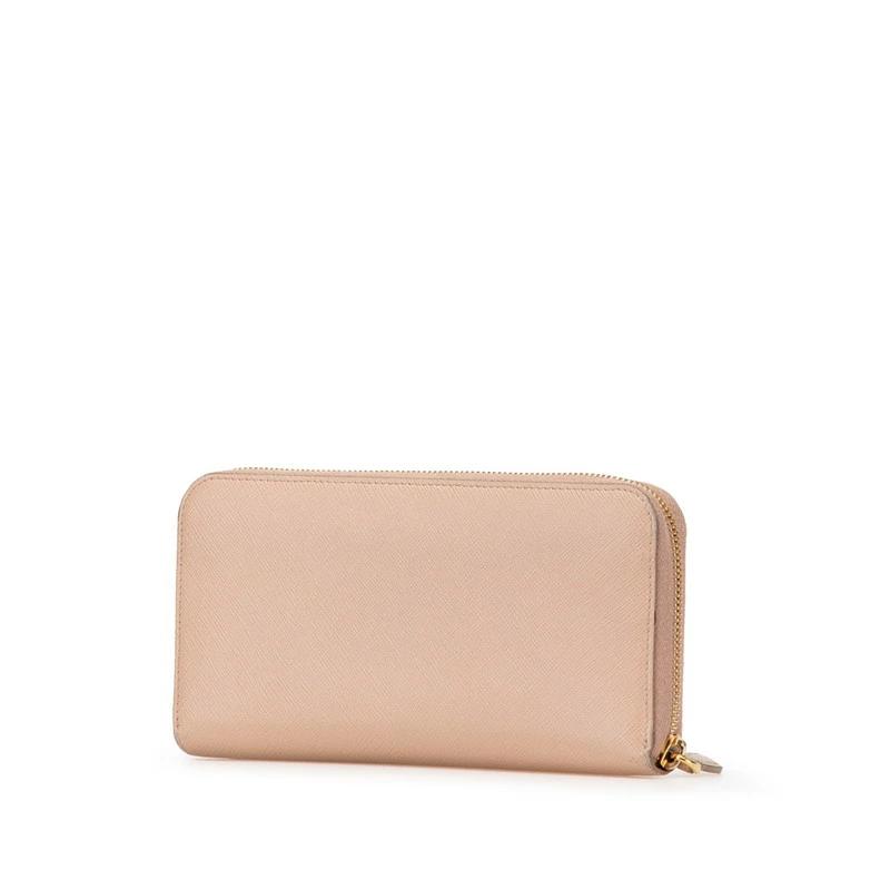 Pre-owned Prada round zipper long wallet in beige and pink Saffiano leather for women.