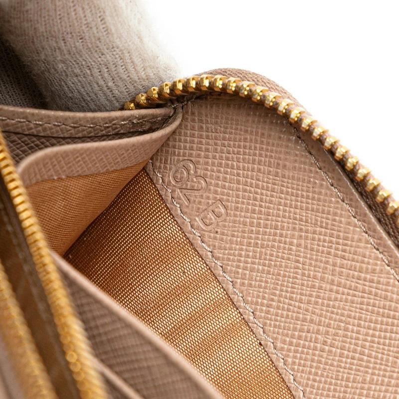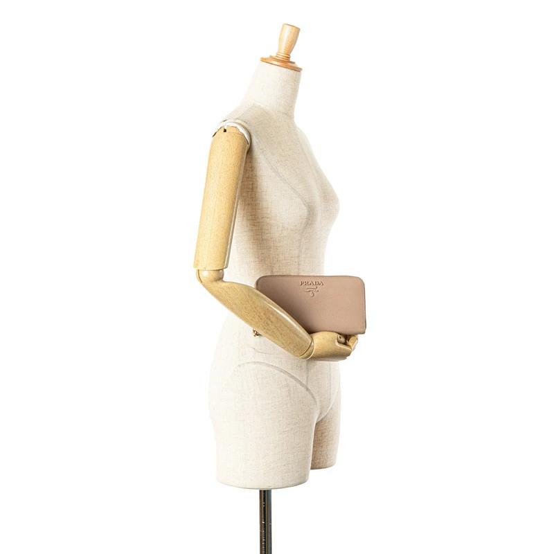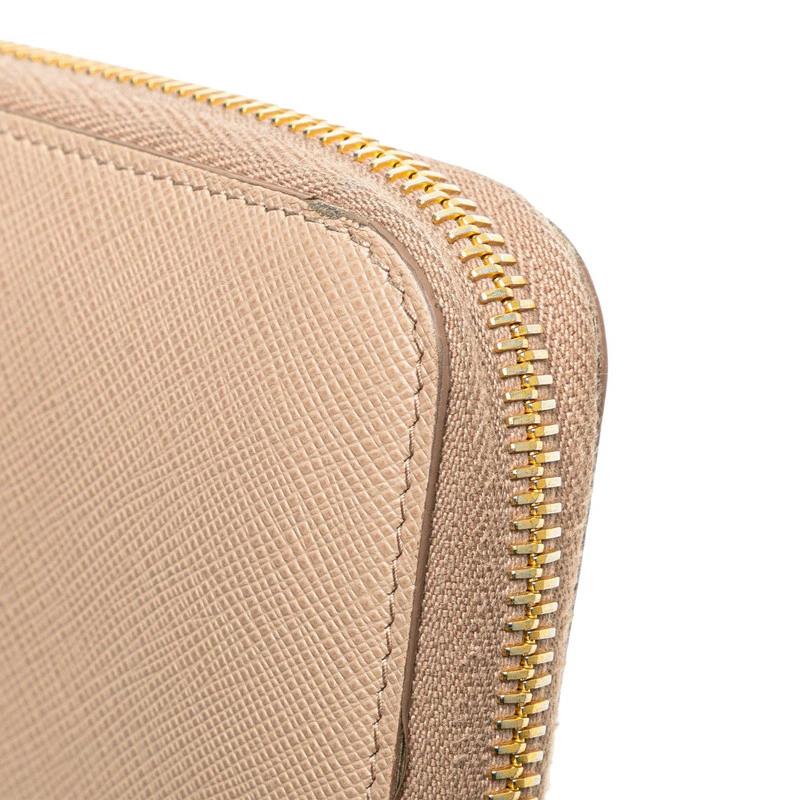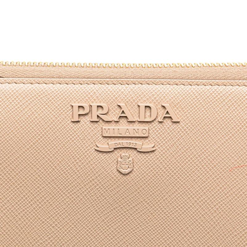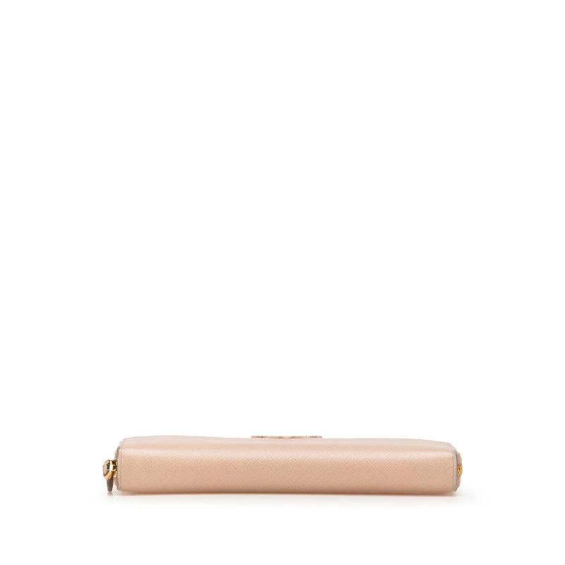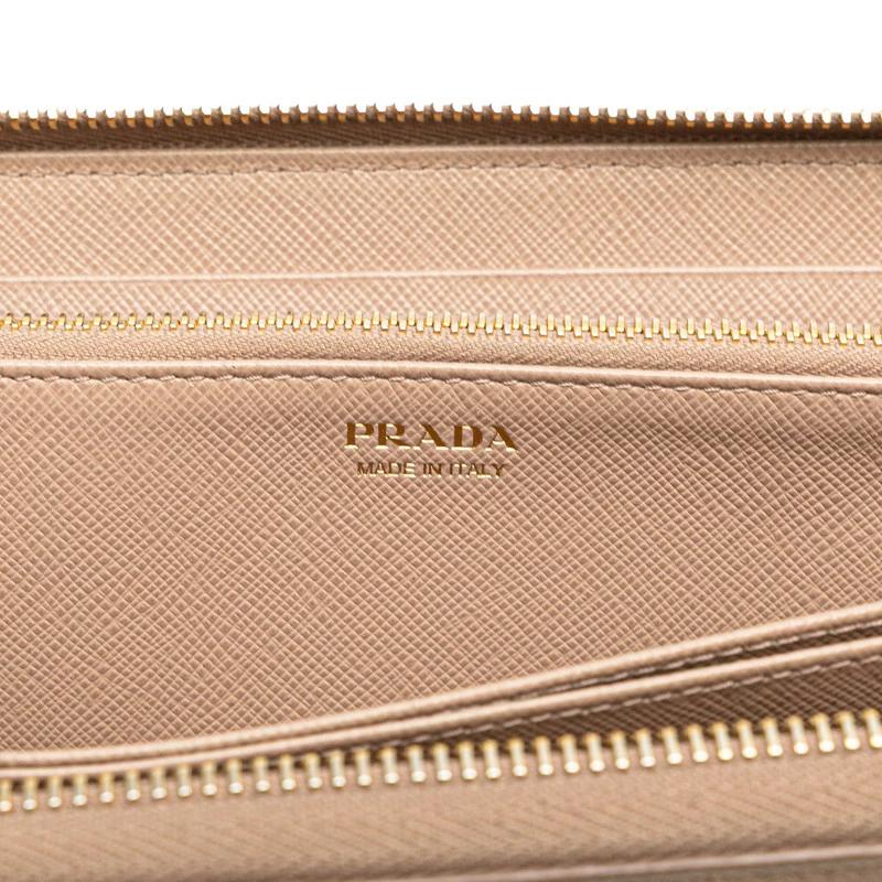 Pre-owned Prada round zipper long wallet in beige and pink Saffiano leather for women.