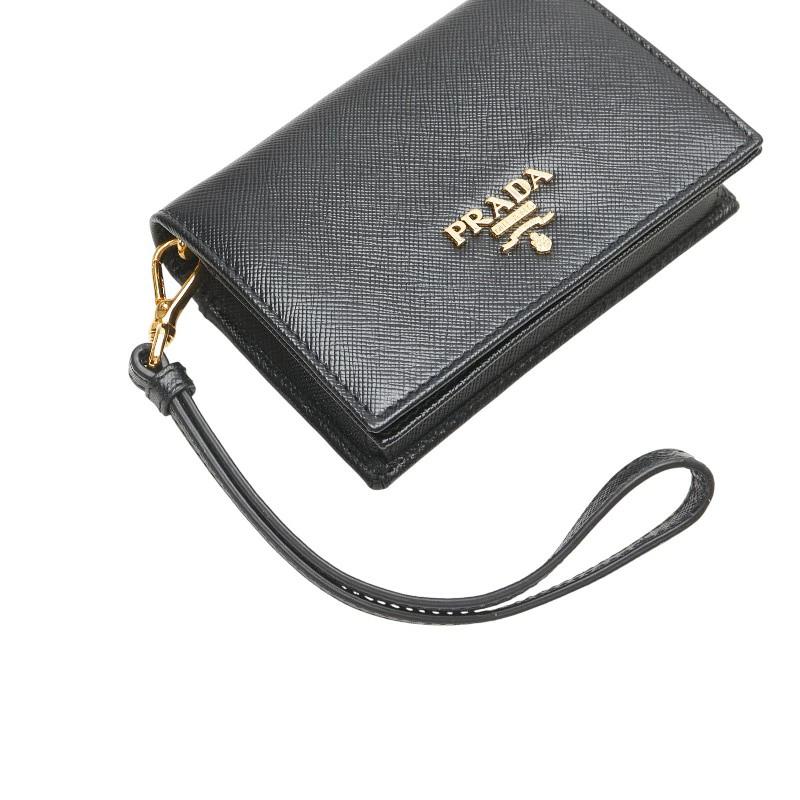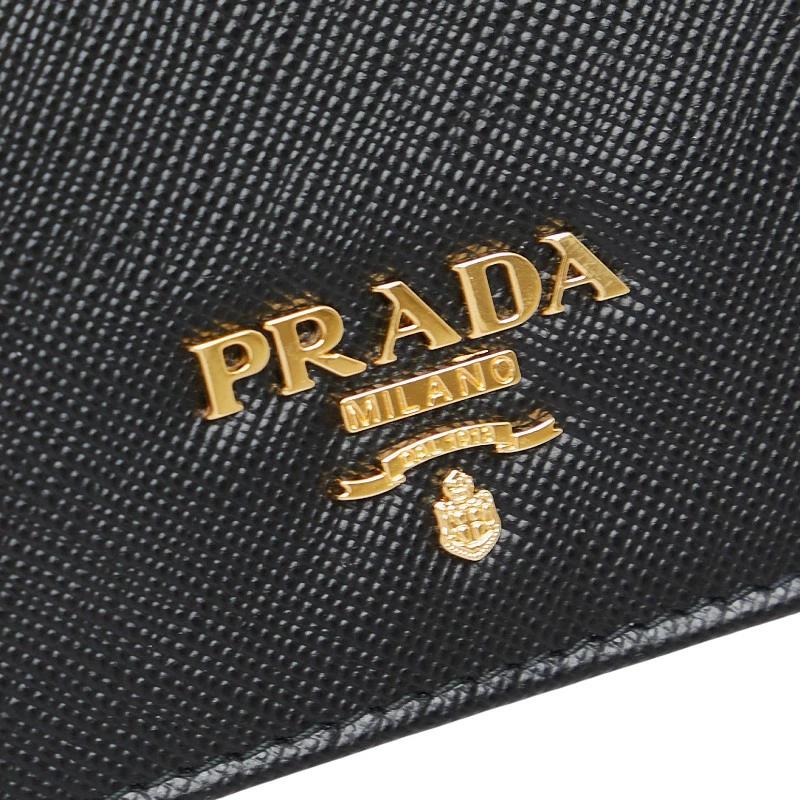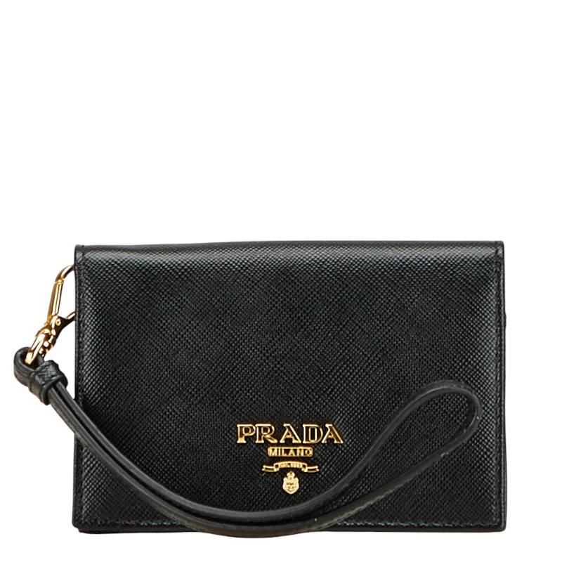 Pre-owned Prada Saffiano Card Case/Business Card Holder 1M1439 Black Leather Women's PRADA