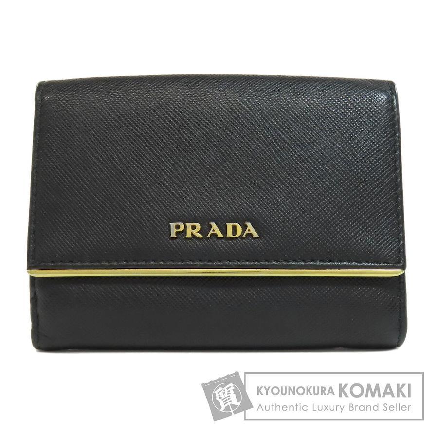 レディース二つ折り財布(小銭入れあり)PRADAカラー:ブラック系サフィアーノコンディションAB+(ABプラス)ランク