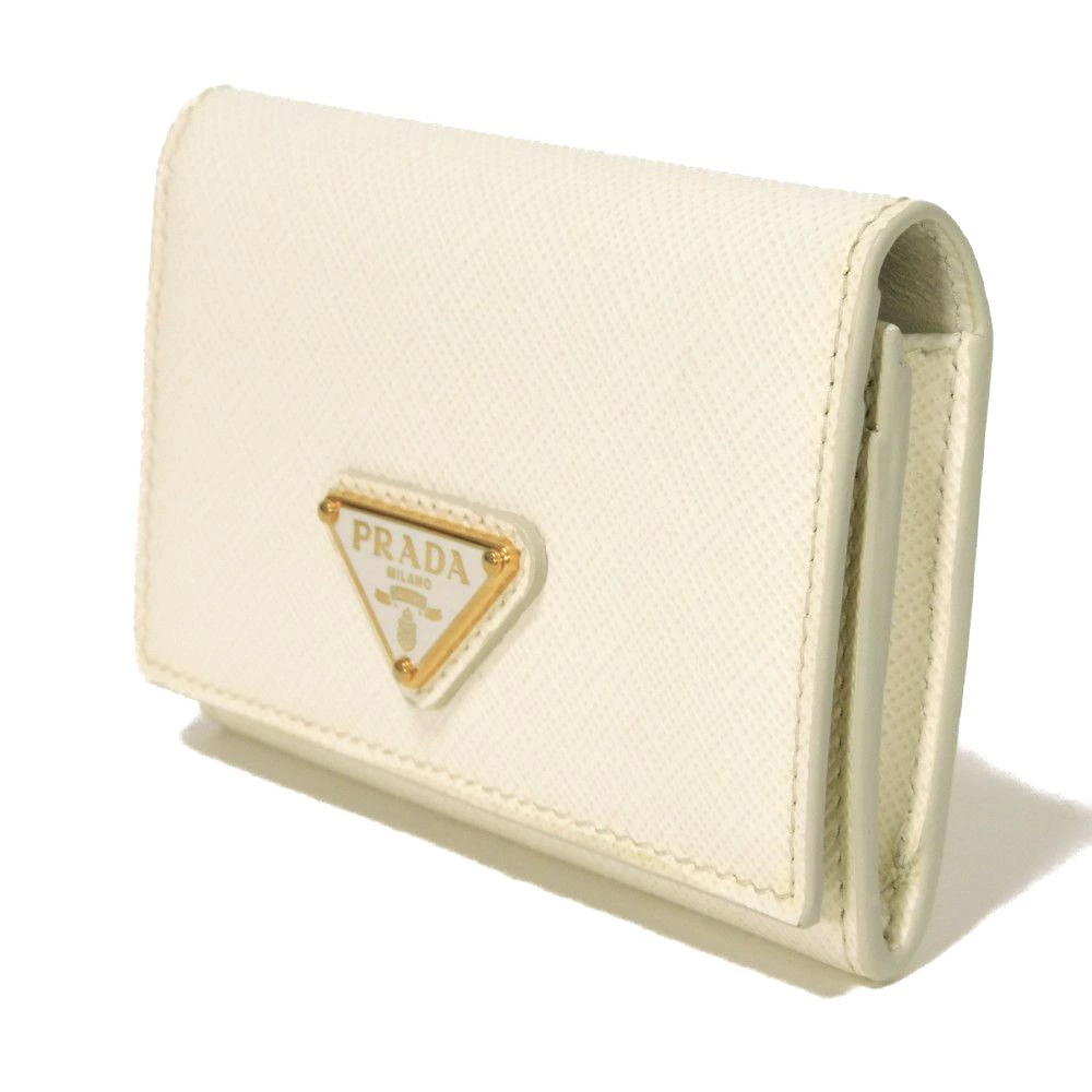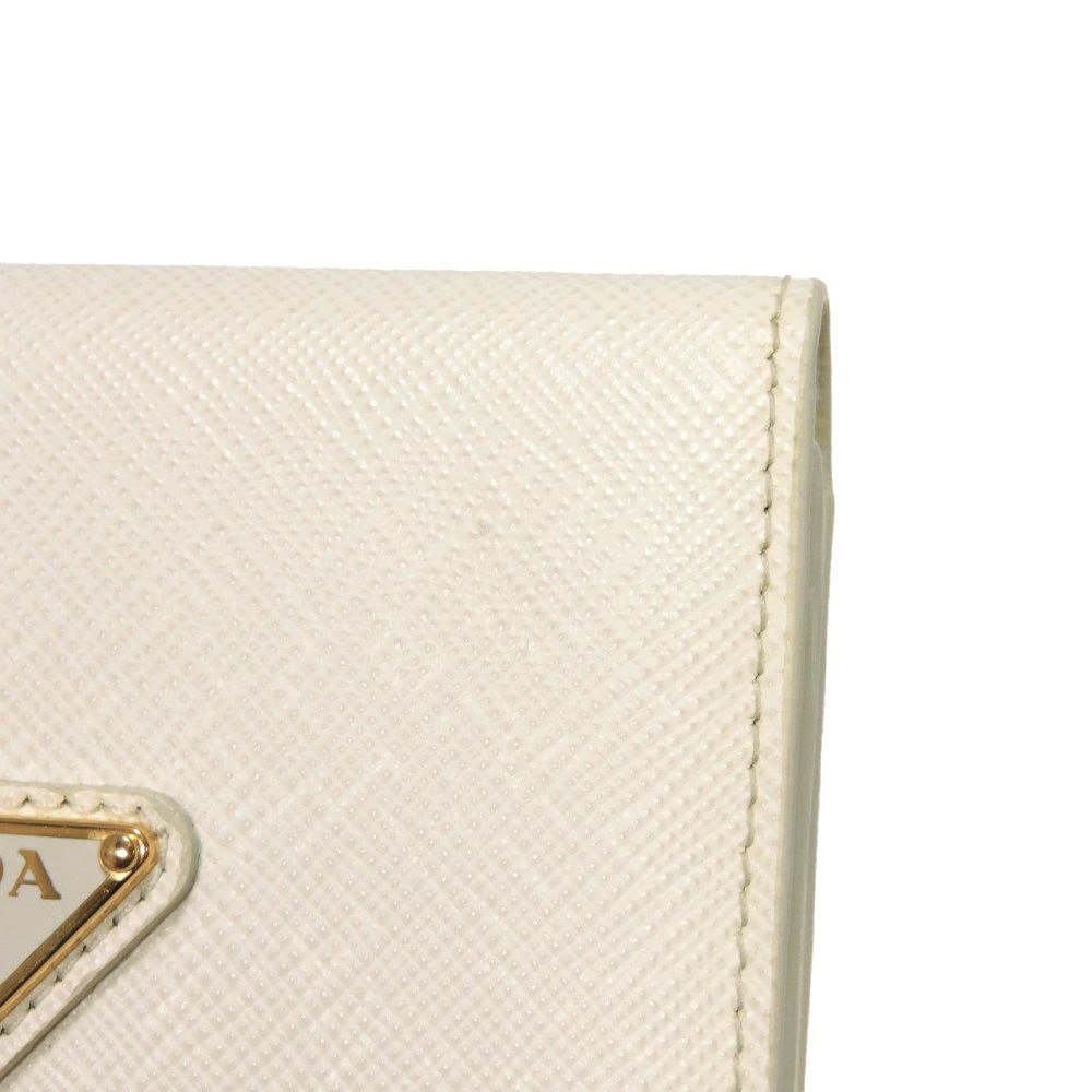 Pre-owned Prada Saffiano Triangle Card Case, White Calfskin, Bifold, RFID, Logo, Bianco, 1MC110 QHH F0009, Men's/Women's, Elegant, Luxury, Sophisticated, Brand Name.