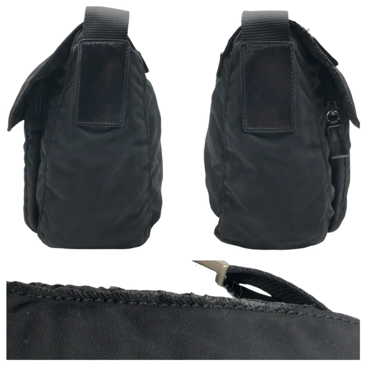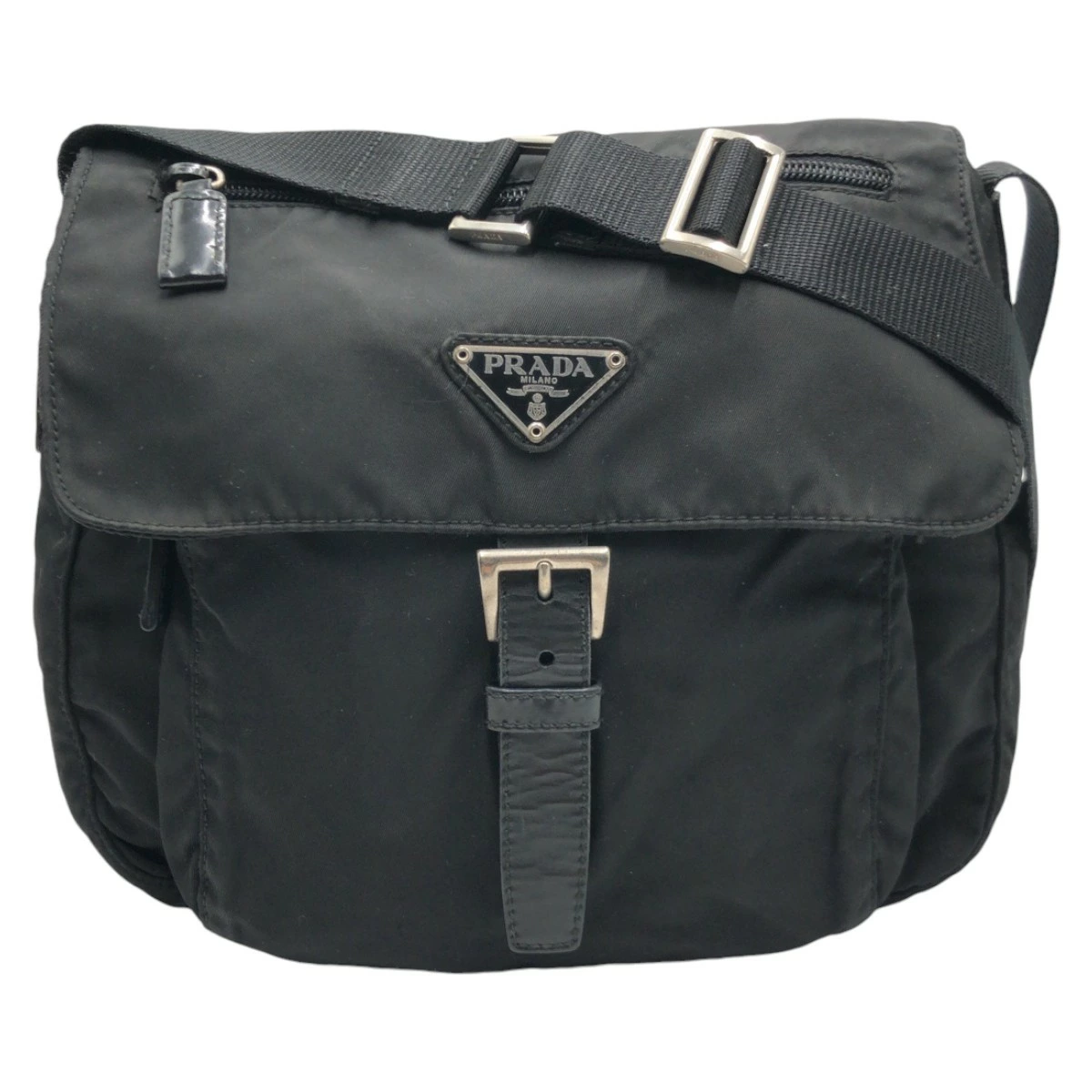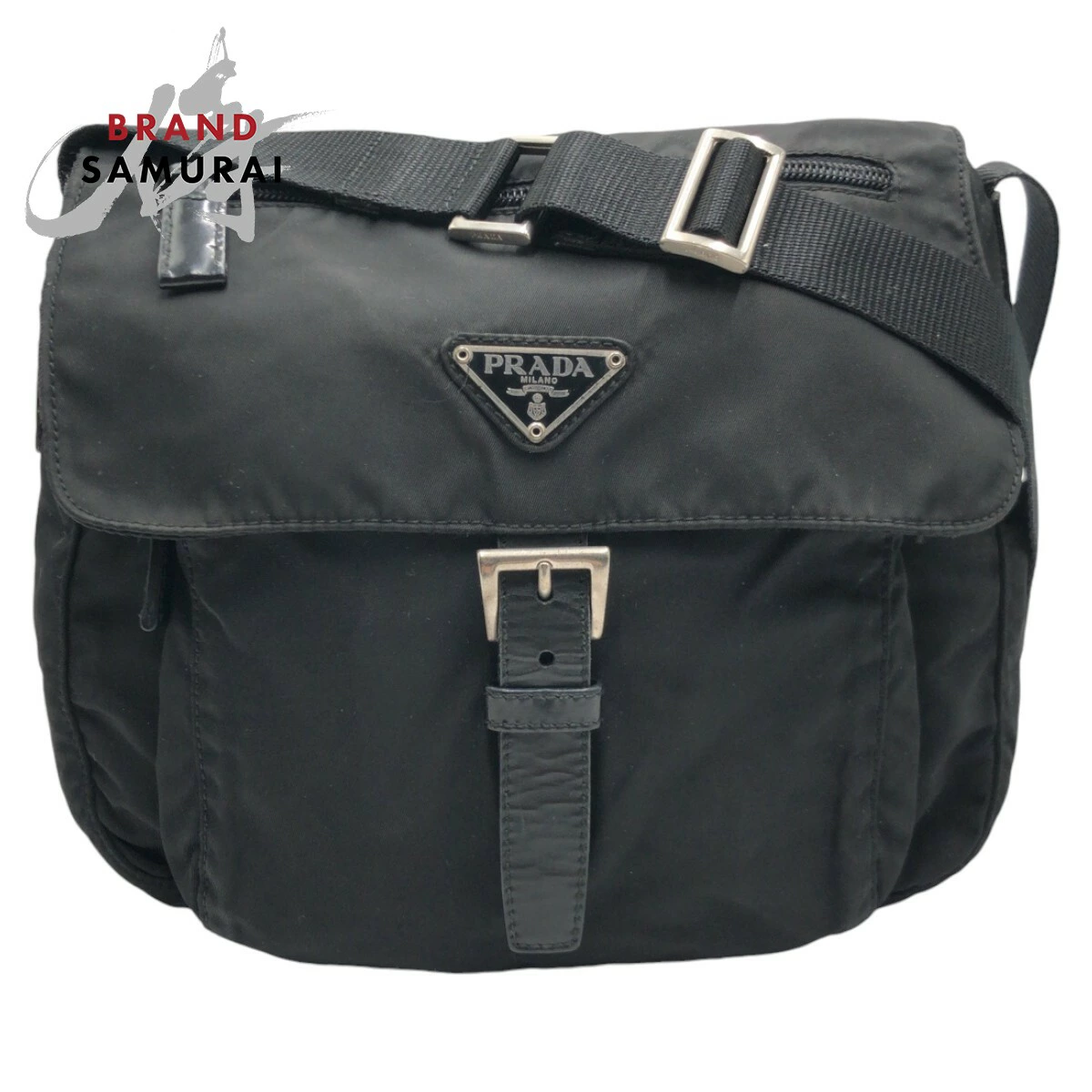 Pre-owned Prada Tessuto triangle logo black nylon shoulder bag/pouch, unisex, women's, 503594