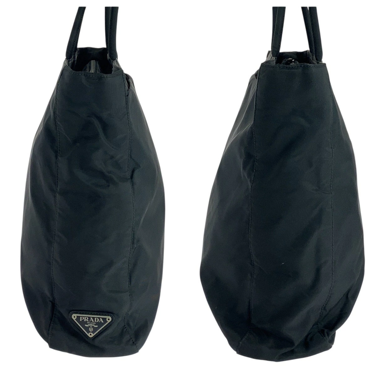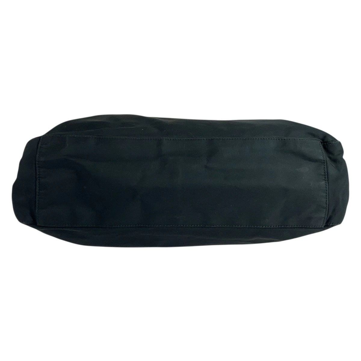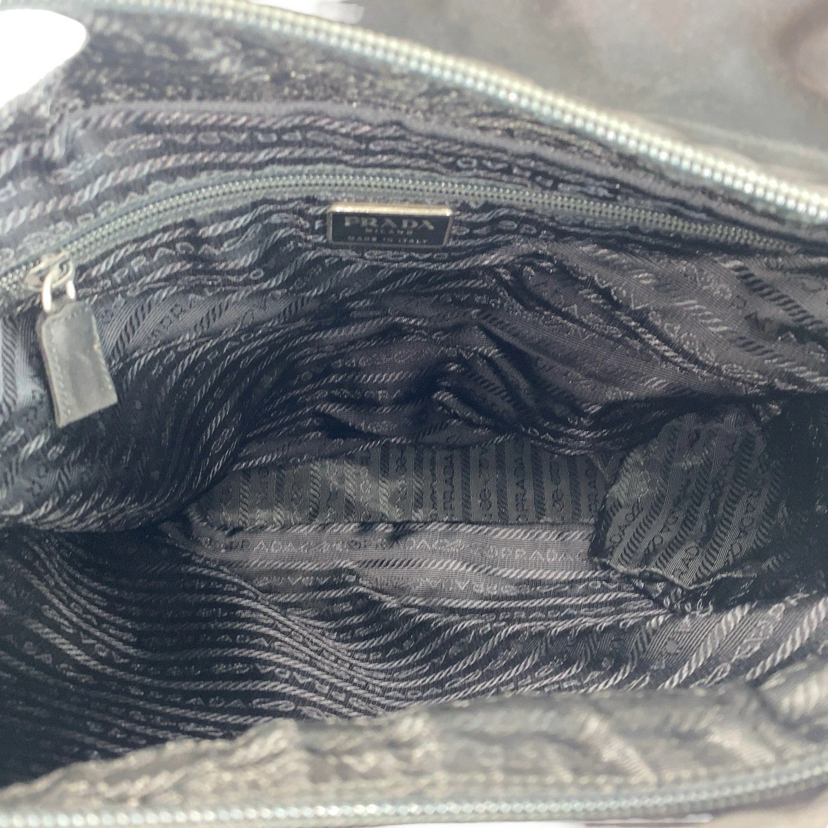 Pre-owned Prada Tessuto triangular logo plate, black nylon shoulder bag with silver hardware, women's size 504240.