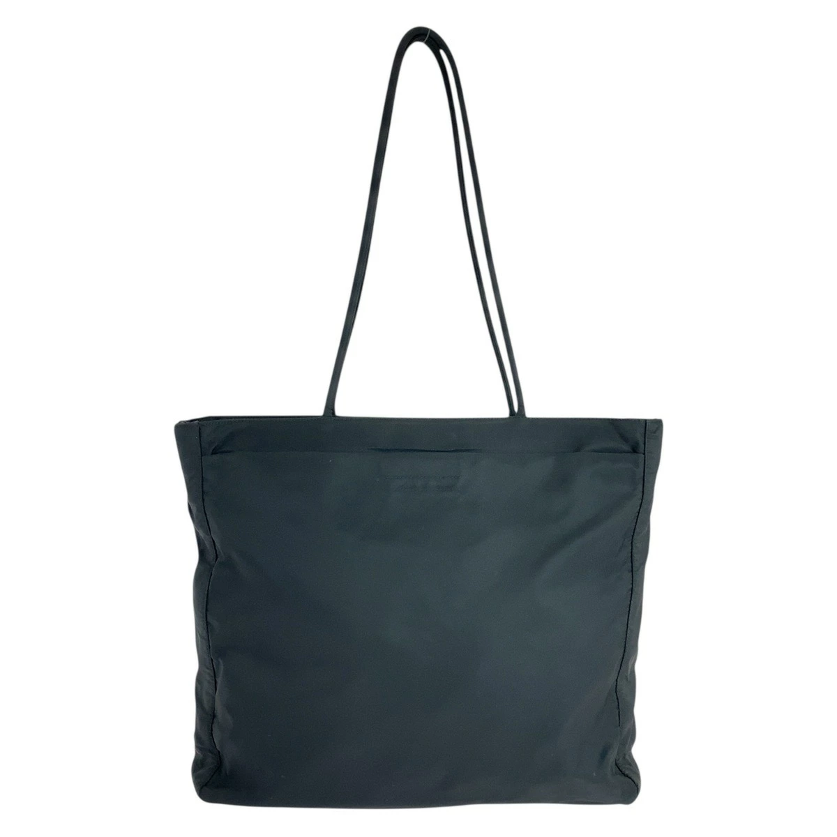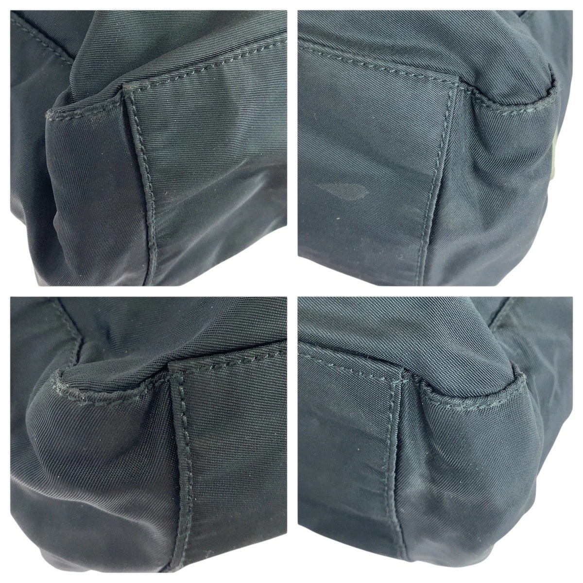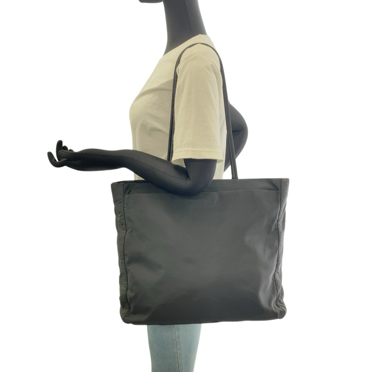 Pre-owned Prada Tessuto triangular logo plate, black nylon shoulder bag with silver hardware, women's size 504240.